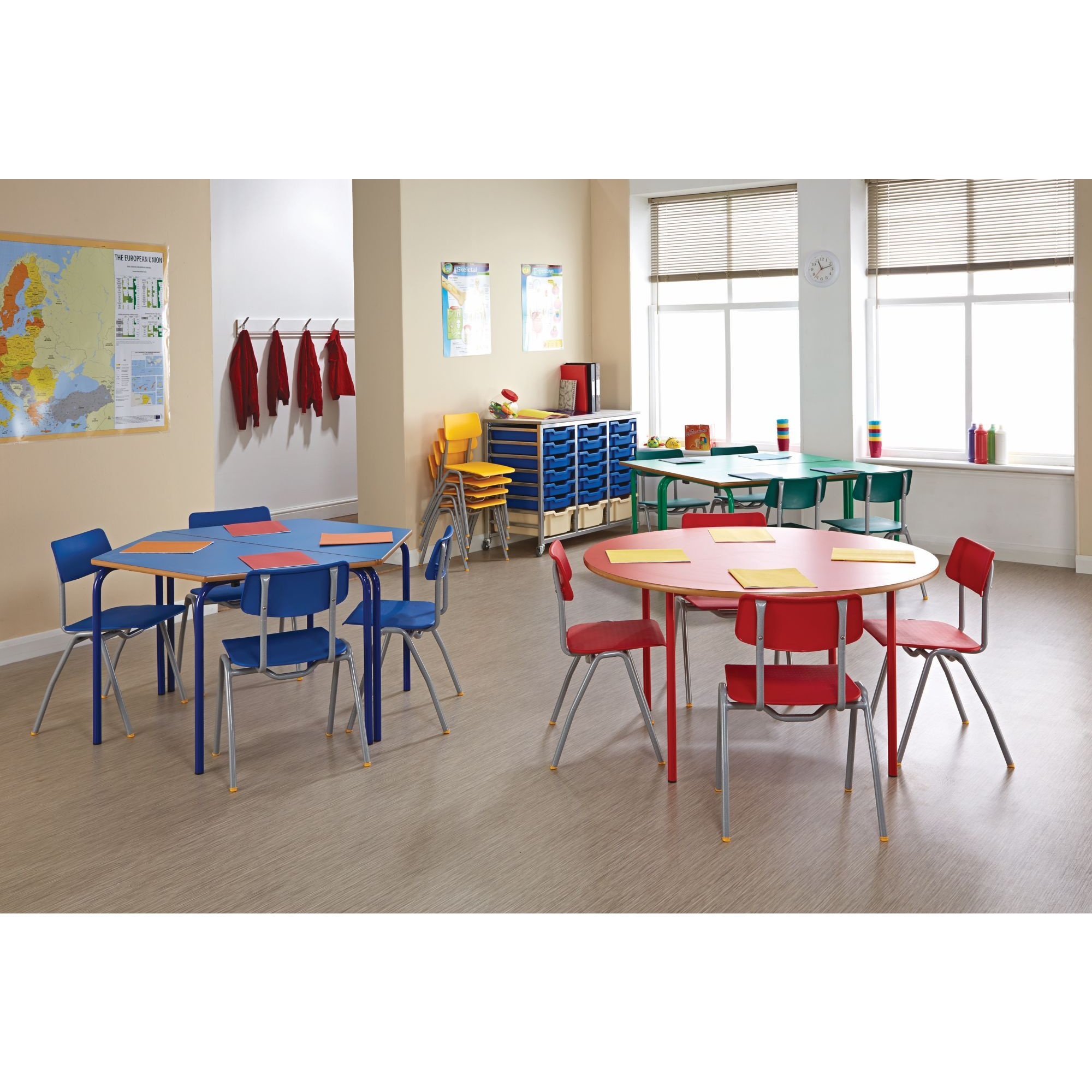 Set up your classrooms and training spaces with Alumni school tables. Made in the UK with demanding education environments in mind, these rectangular classroom tables are versatile, robust, functional and stylish. Alumni tables cater for all ages from early years, primary and junior school to secondary school, further education and beyond. They come in a fantastic range of colour combinations, and they arrive fully assembled for a quick start. And, if you’re still debating, these classroom tables come with a 5 year UK manufacturers guarantee so your school can enjoy years of reliable use.Details