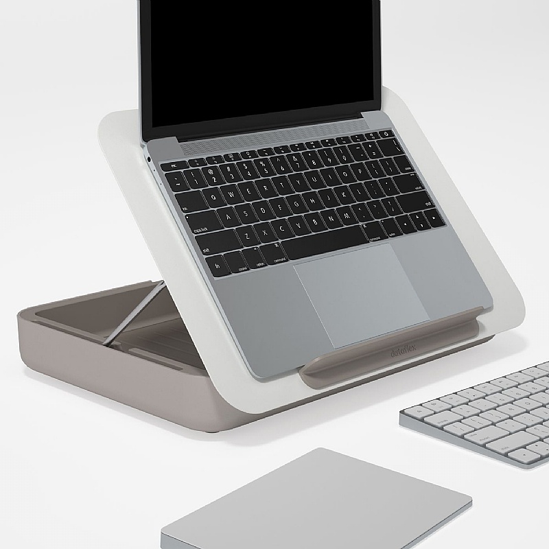 Taking its inspiration from the Japanese lunch box, the Bento laptop and tablet riser is chock full of ergonomic benefits. This clever little box of tricks allows you to create an ergonomic workspace anywhere and bring your essentials with you in the caddy box. Bento provides ergonomic comfort whether you are on the go, working from your home office or in the workplace. It supports your laptop at the optimum position for eye-level ergonomic viewing and not only that, it also stores your workspace essentials inside so you are always ready for action.Details