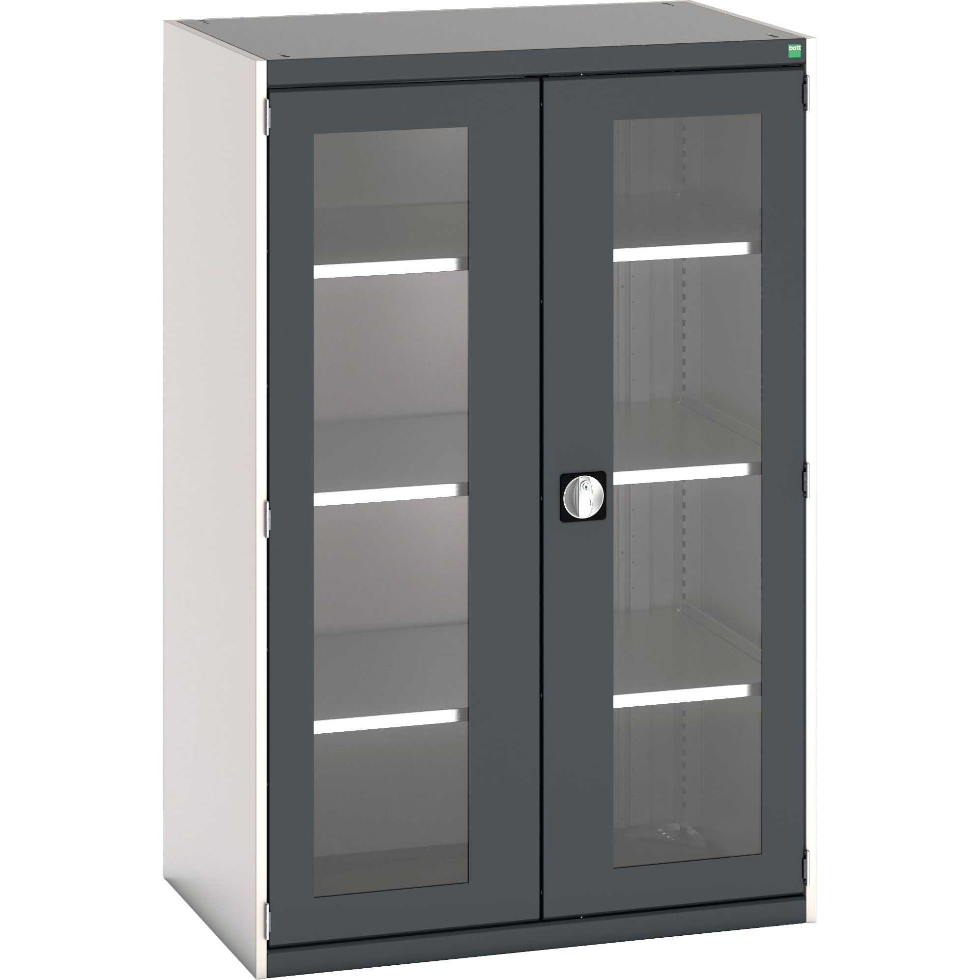 Support UK manufacturing with the range of high quality storage cabinets from Bott. Bott manufacture innovative storage solutions for use in workshops and garages right here in the UK. Craft a reliable, modern workshop with Bott Cubio Vision Metal Cupboards. These durable cupboards pair a time-tested design with a sleek, contemporary update. This versatile cupboard is perfect for storing smaller items securely in your workshop.. Keep your tools, fixings and components secure with Bott products. To top it all off, all Bott products come with a massive 10 year guarantee, for true UK quality you can trust.Details