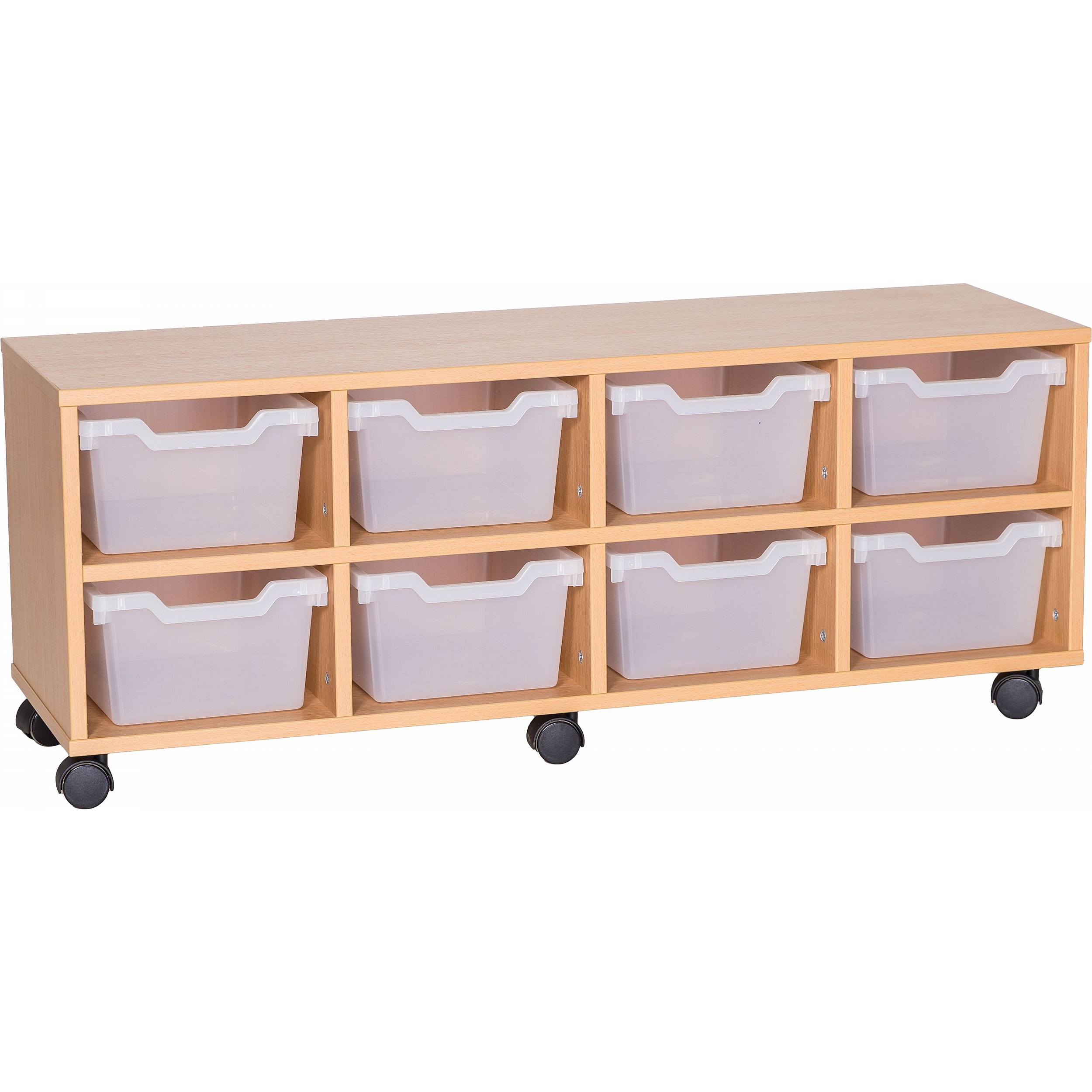 - Versatile quad column mobile storage unit complete with 8 deep Cubby trays.