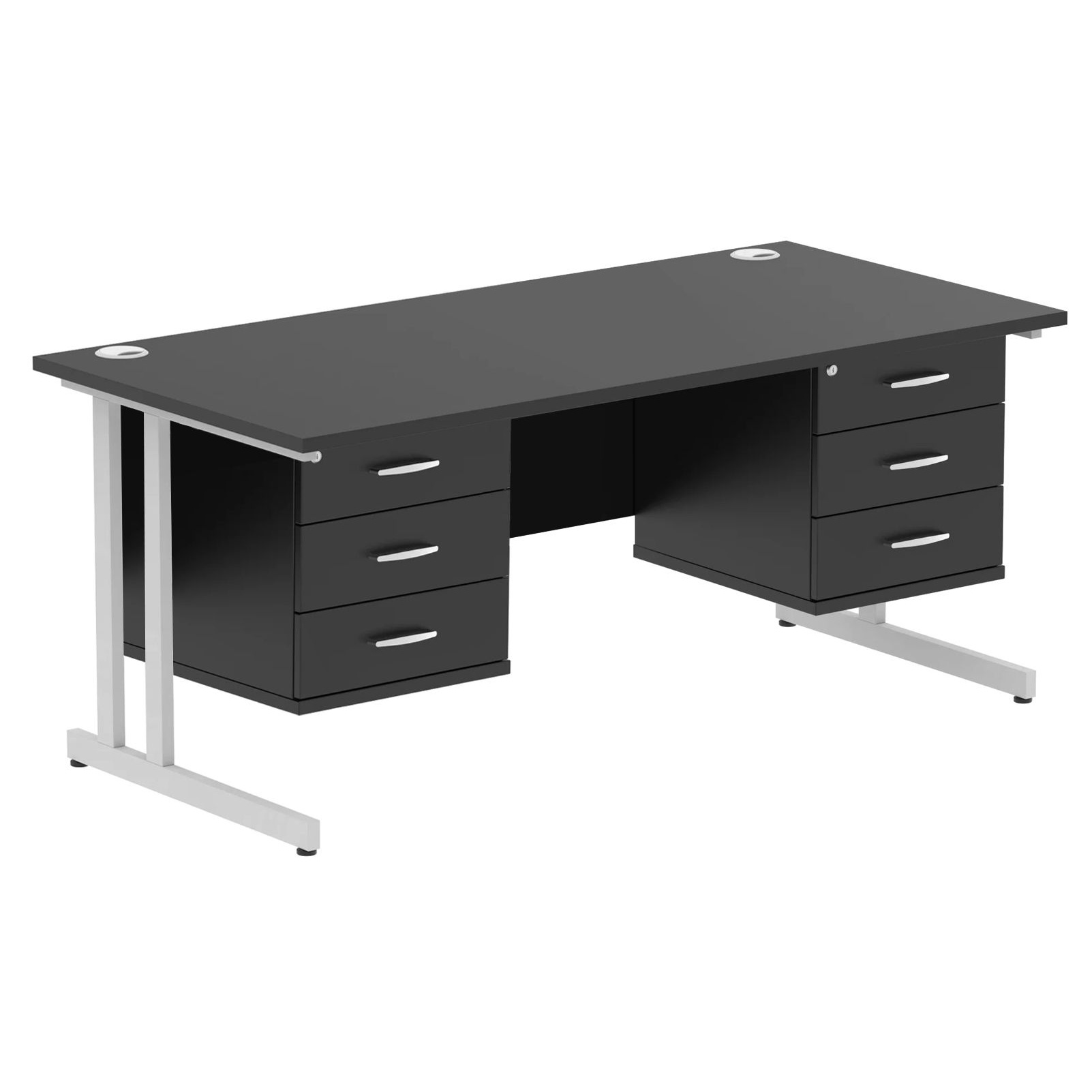 Eclipse Black Rectangular Office Desk With Double Fixed Drawers