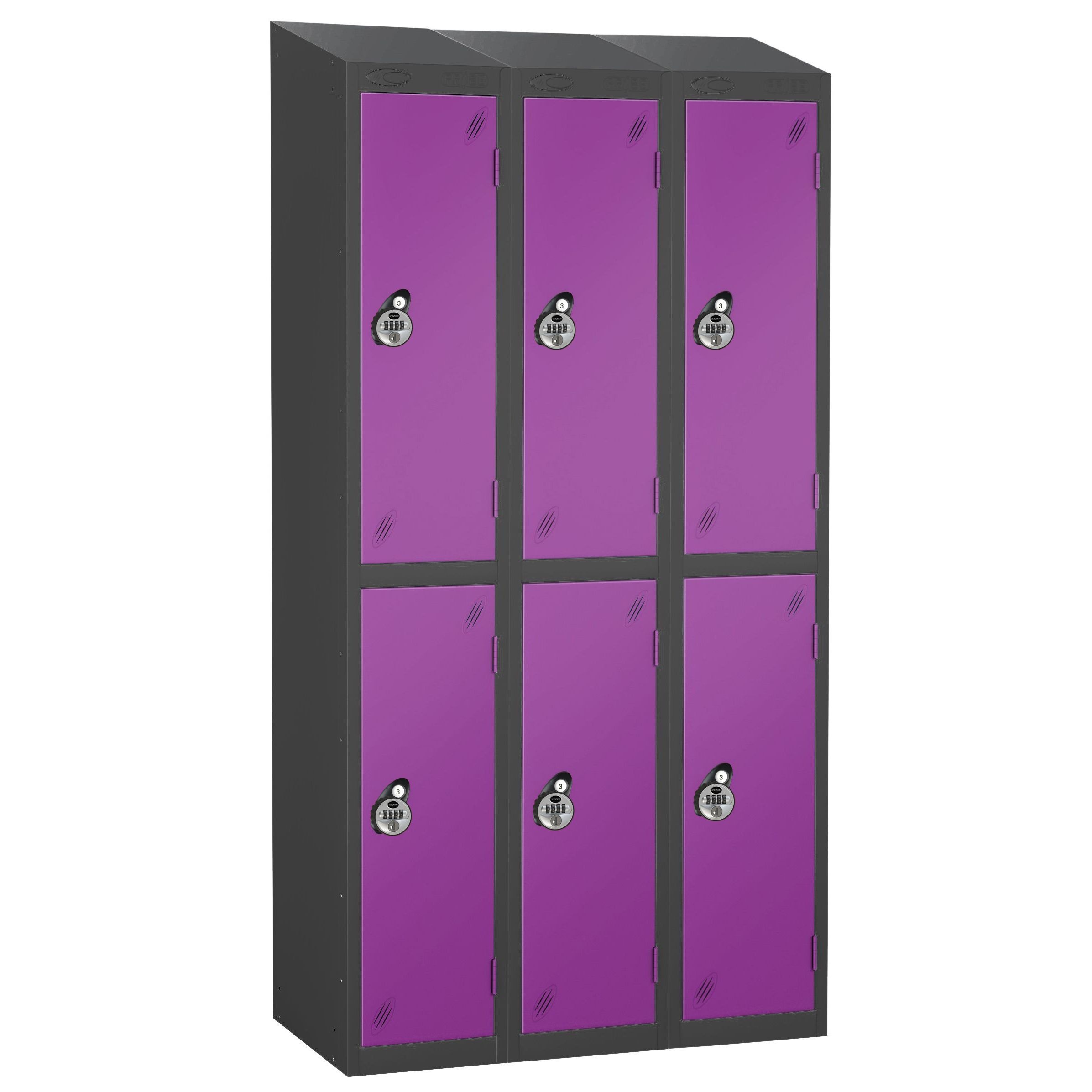 - Sloping top means nothing can be stored on top of the lockers.