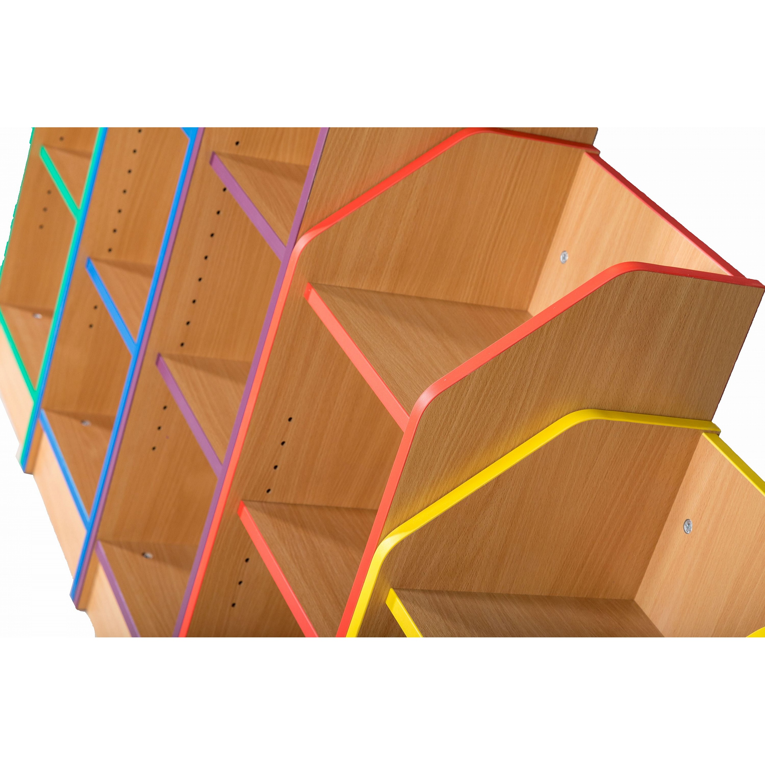 Organise your learning environment with the range of Folio Premium Library furniture. These trusty library pieces can be found in schools across the UK providing reliable and well organised library spaces for nurseries, primary and secondary schools. The Folio Premium Library Bookcases range comes in a beech finish with a selection of edge colours to choose from. The Folio Premium Library range is manufactured right here in the UK, so you know it is quality you can trust.Details