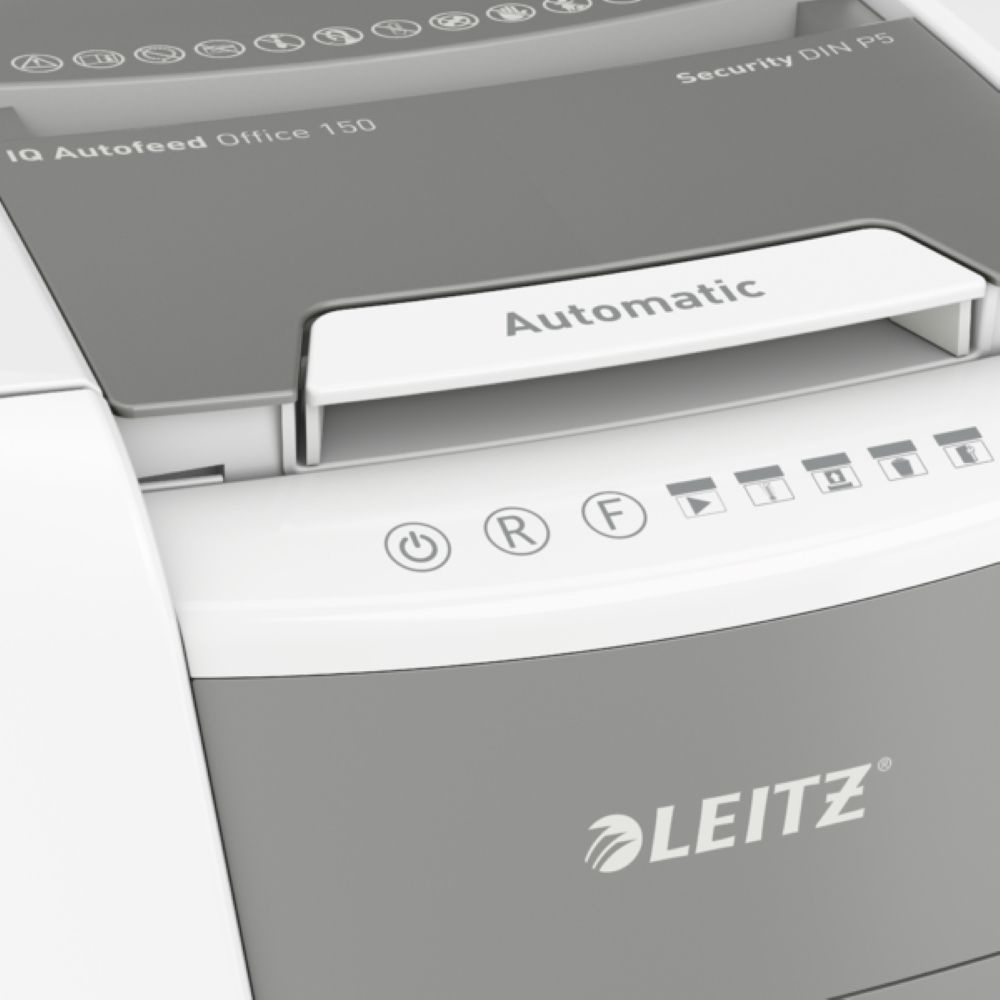 Experience effortless document disposal with the Leitz IQ-P5 Office Autofeed Micro Paper Shredder, built for quiet, independent operation so you can stay focused. Simply load your papers, close the lid, and let the shredder do the rest. With advanced features like anti jam technology, clean emptying, and secure cross cut shredding, this intelligent machine brings peace of mind and productivity to any professional workspace. In today’s data driven world, protecting confidential information isn’t just smart—it’s essential. Whether you're safeguarding personal details or ensuring your business meets GDPR compliance, a reliable shredder is a must have.Details
