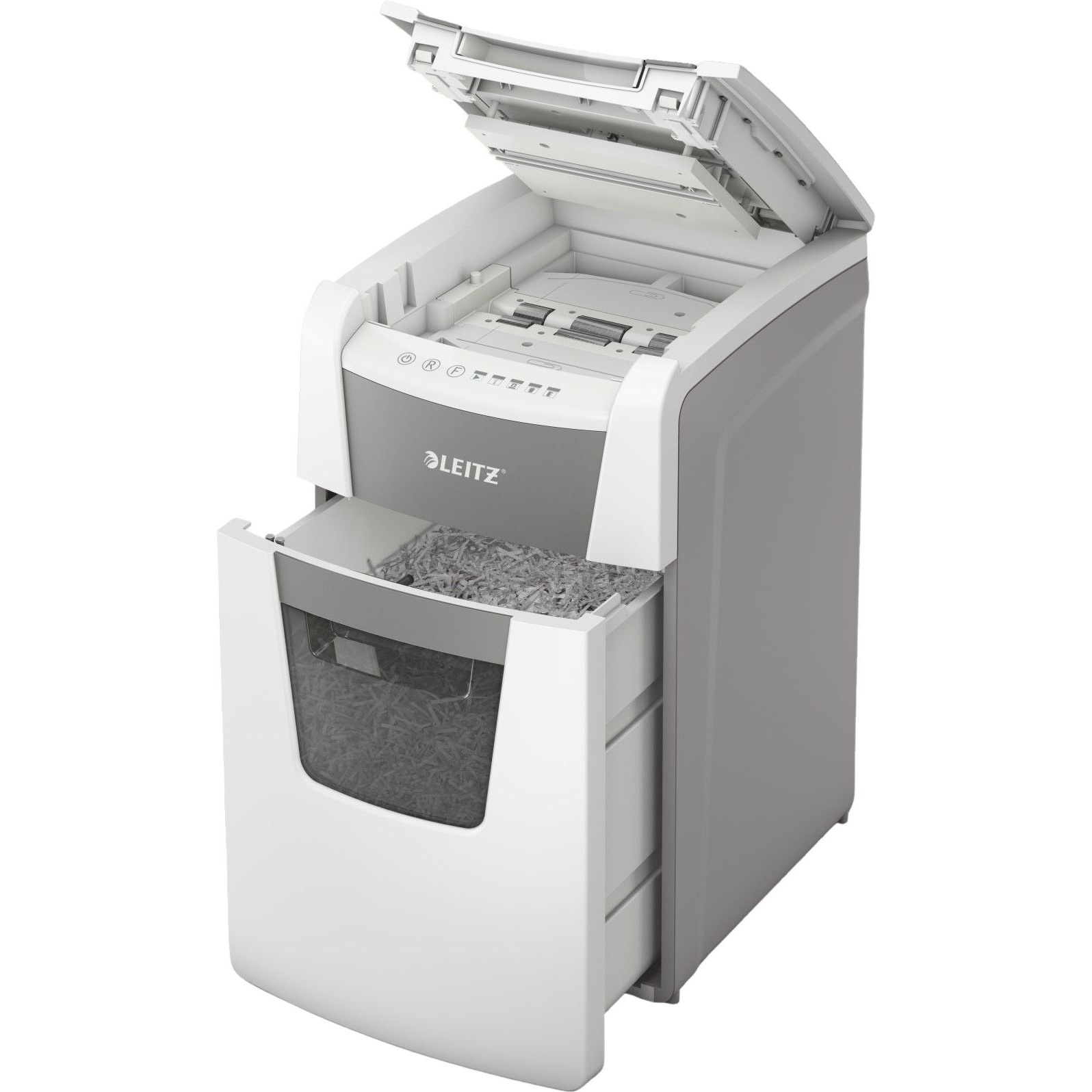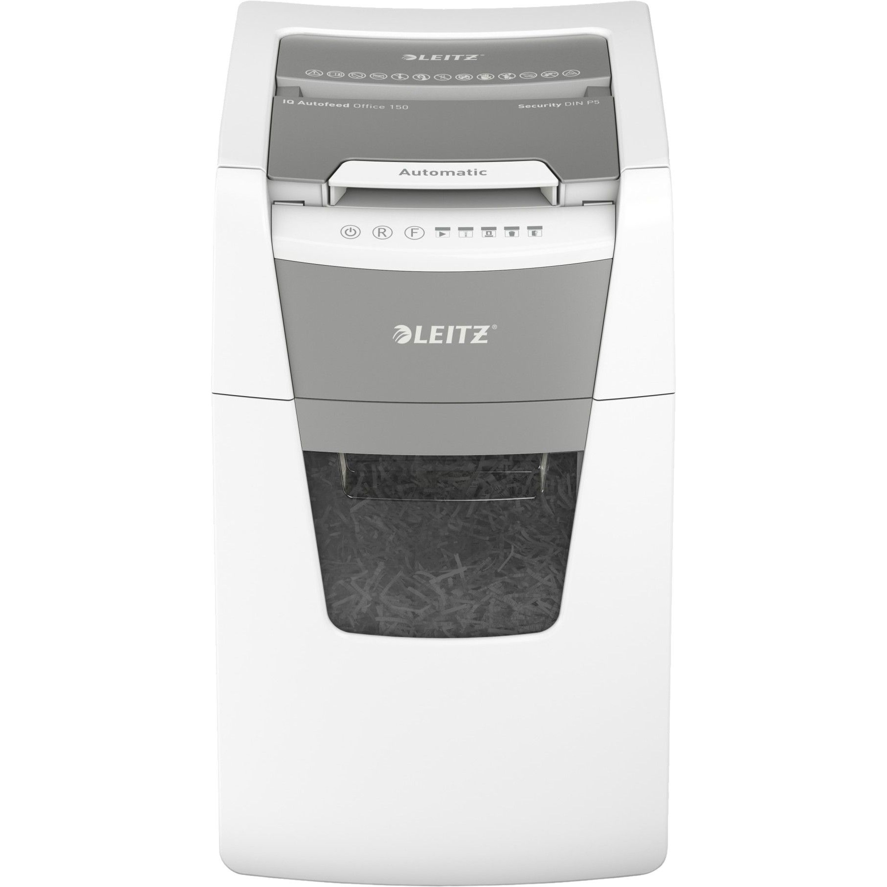 - Automatically shreds up to 150 sheets of A4 paper, with a manual slot for up to 8 sheets.