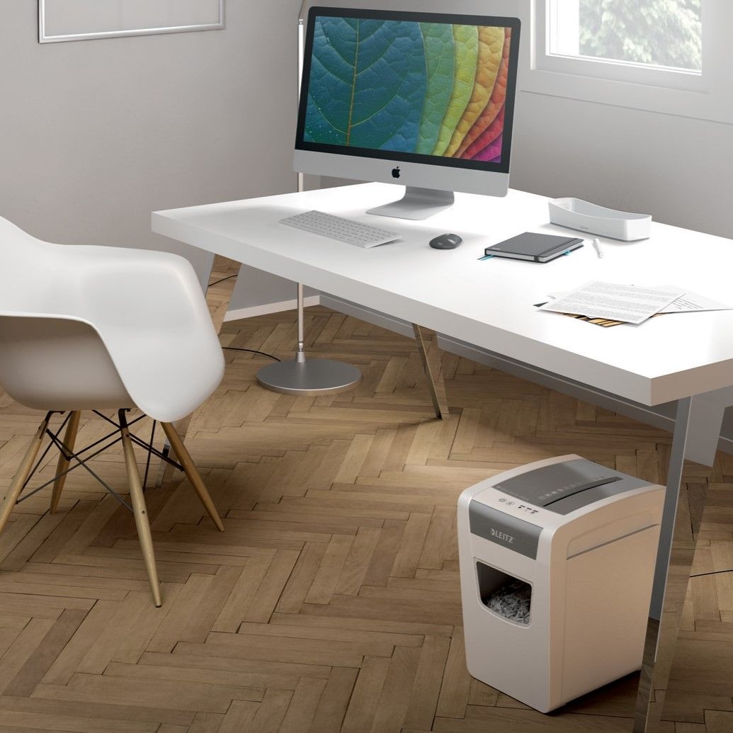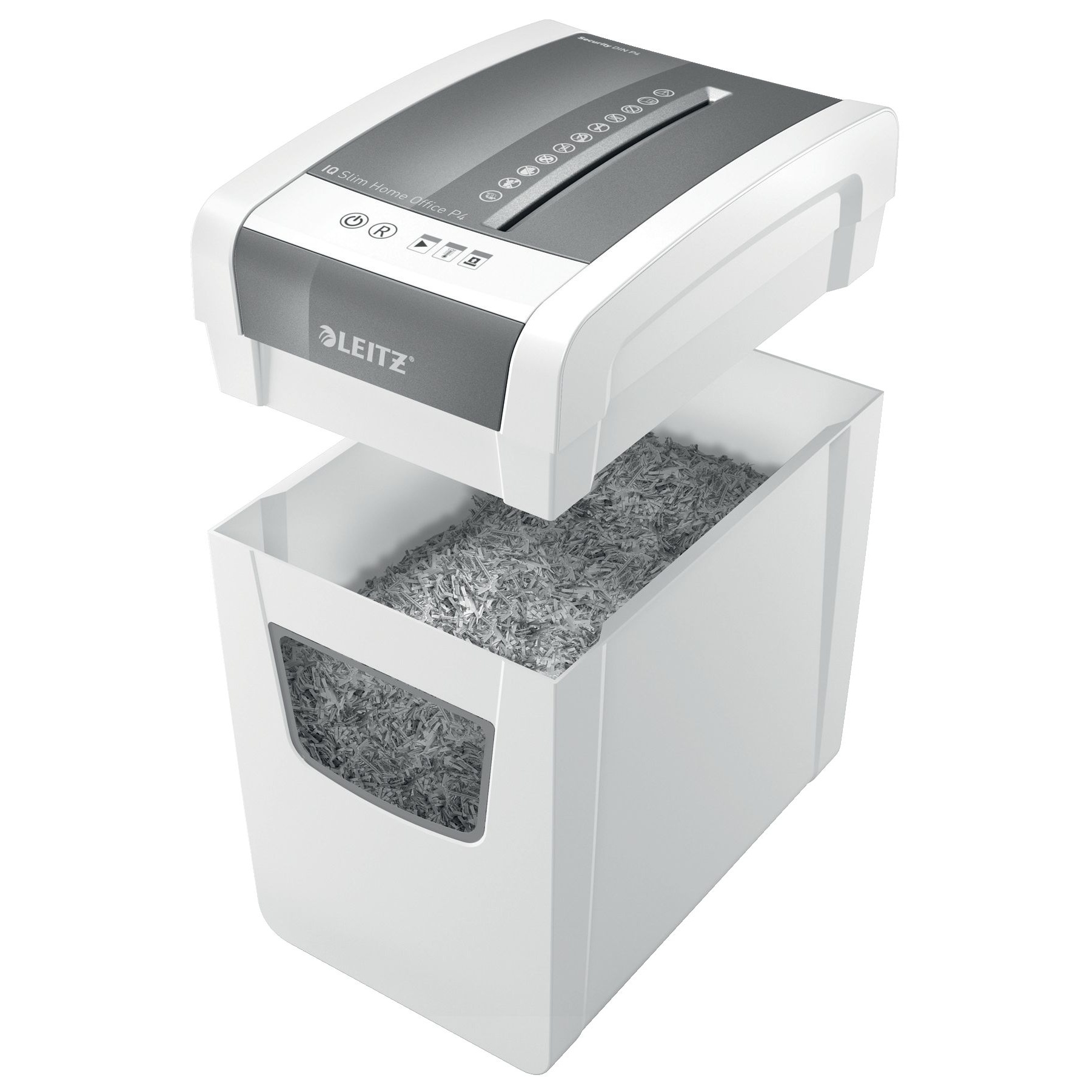 Bring style and simplicity to your workspace with the Leitz IQ Slim Home Office Autofeed Cross Cut Paper Shredder. Designed for quiet, efficient performance, this compact shredder fits neatly into any home office while delivering reliable document protection. With anti jam technology, intuitive touch controls, and DIN P4 cross cut security, it’s the perfect companion for everyday shredding tasks. Whether you're disposing of personal paperwork or protecting sensitive information, this shredder helps you stay secure and clutter free.Details