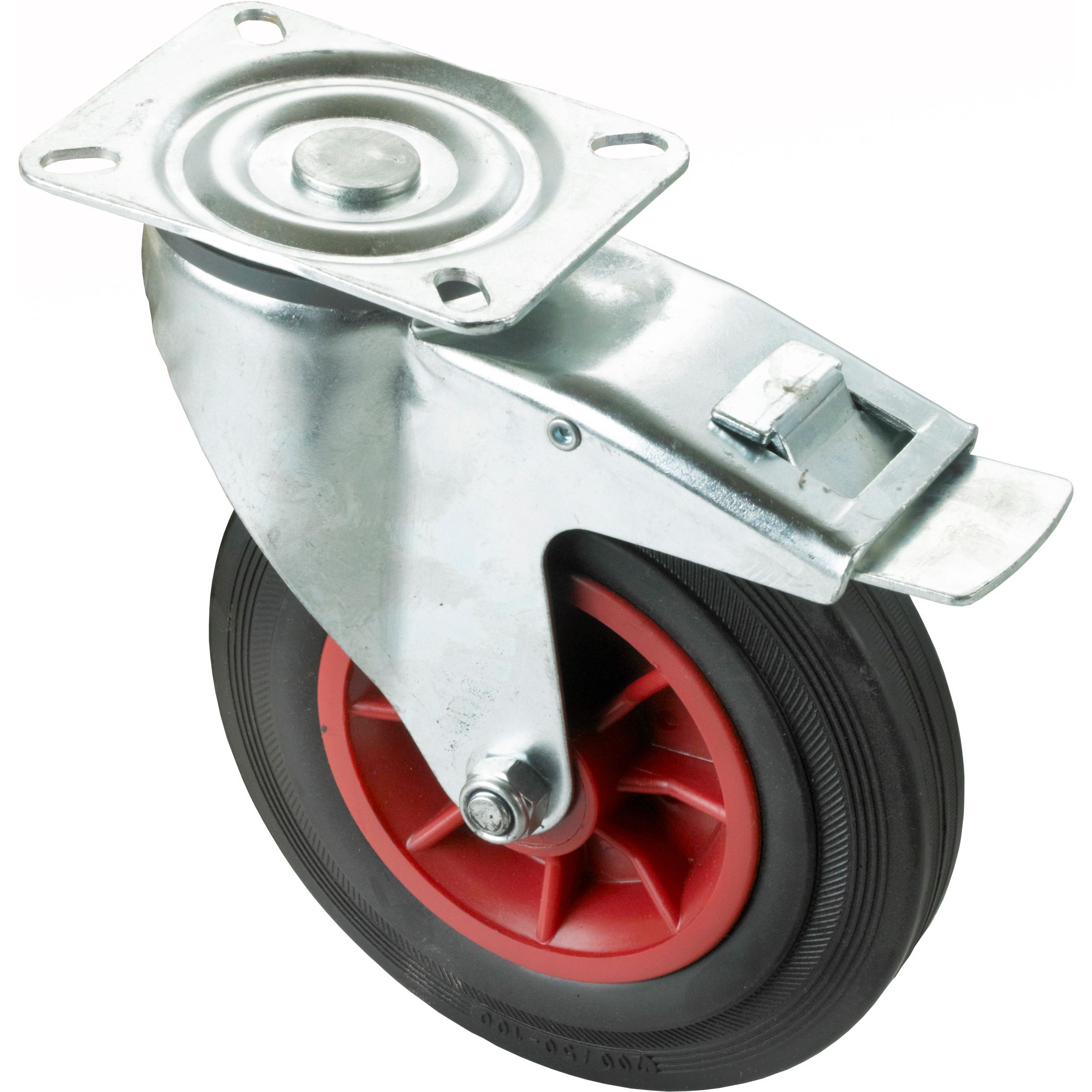 - Comes complete with 2 fixed and 2 swivel 200mm diameter red centred castors fitted with solid rubber tyres and roller bearings