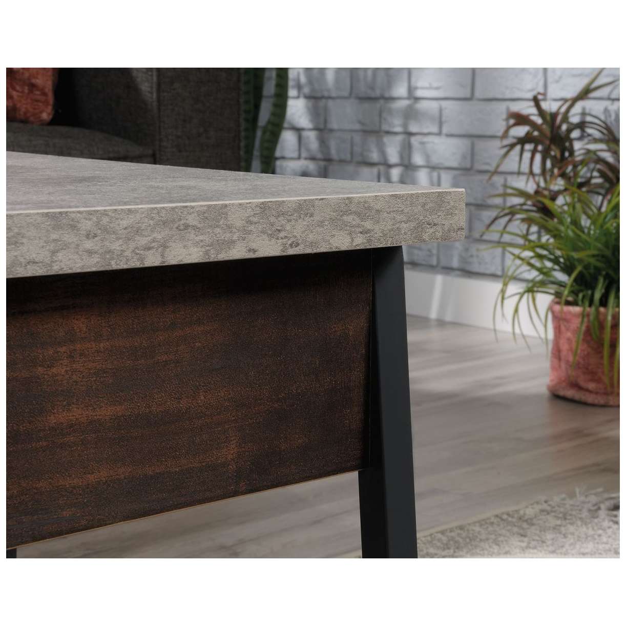 - This piece blends in so well that guests will never suspect that this lovely coffee table conceals a clever lift up desk.