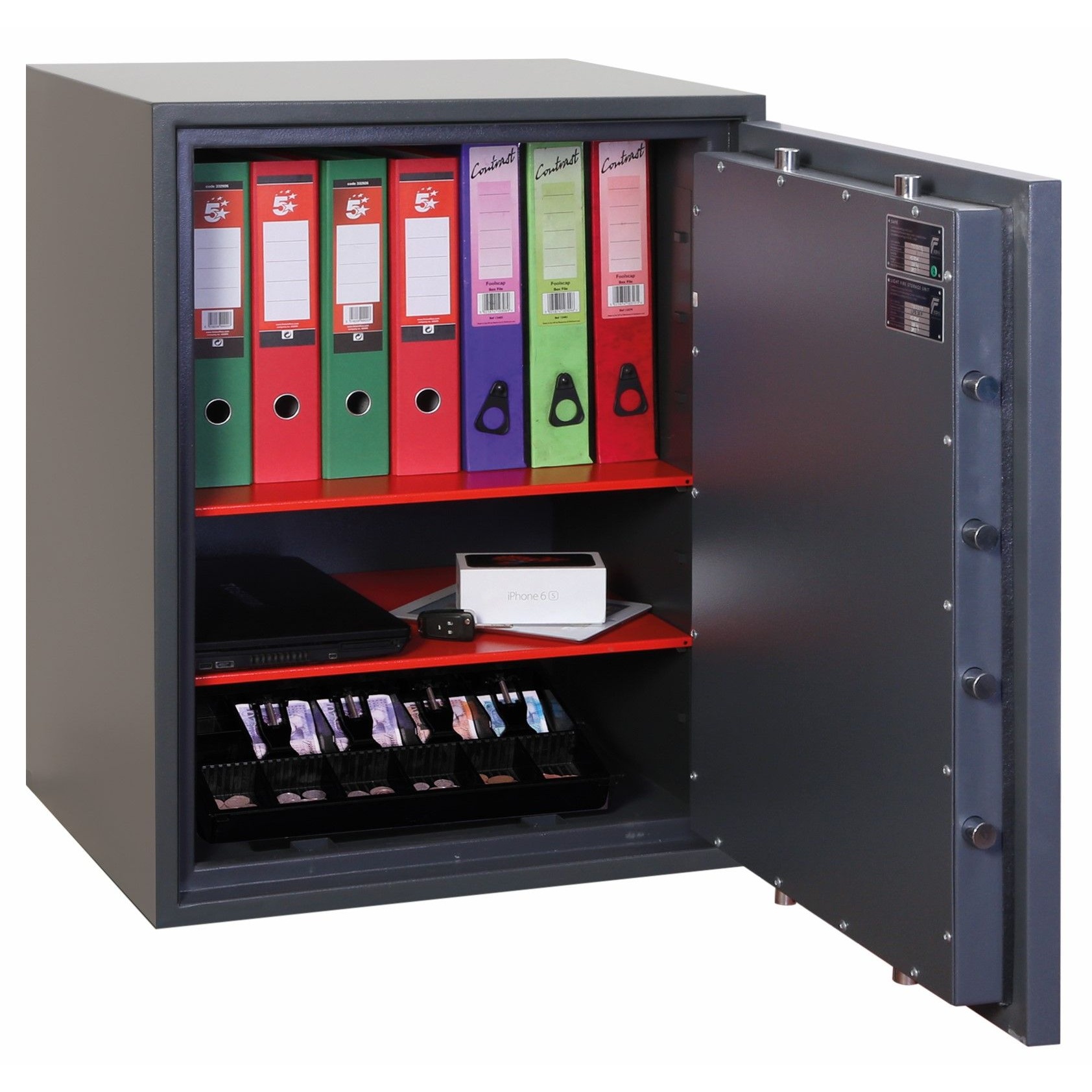 - The double walled construction with high grade concrete infill and anti-drill plate, provides protection from fire and burglary.