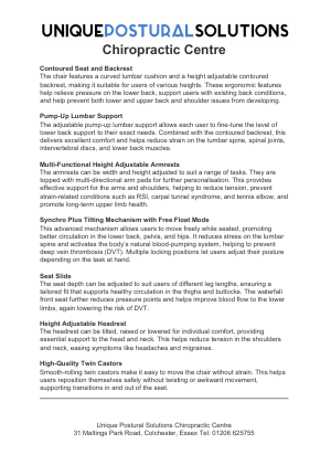 - Posture-Task sits on a sturdy 5 star polished aluminium base with twin wheel castors.