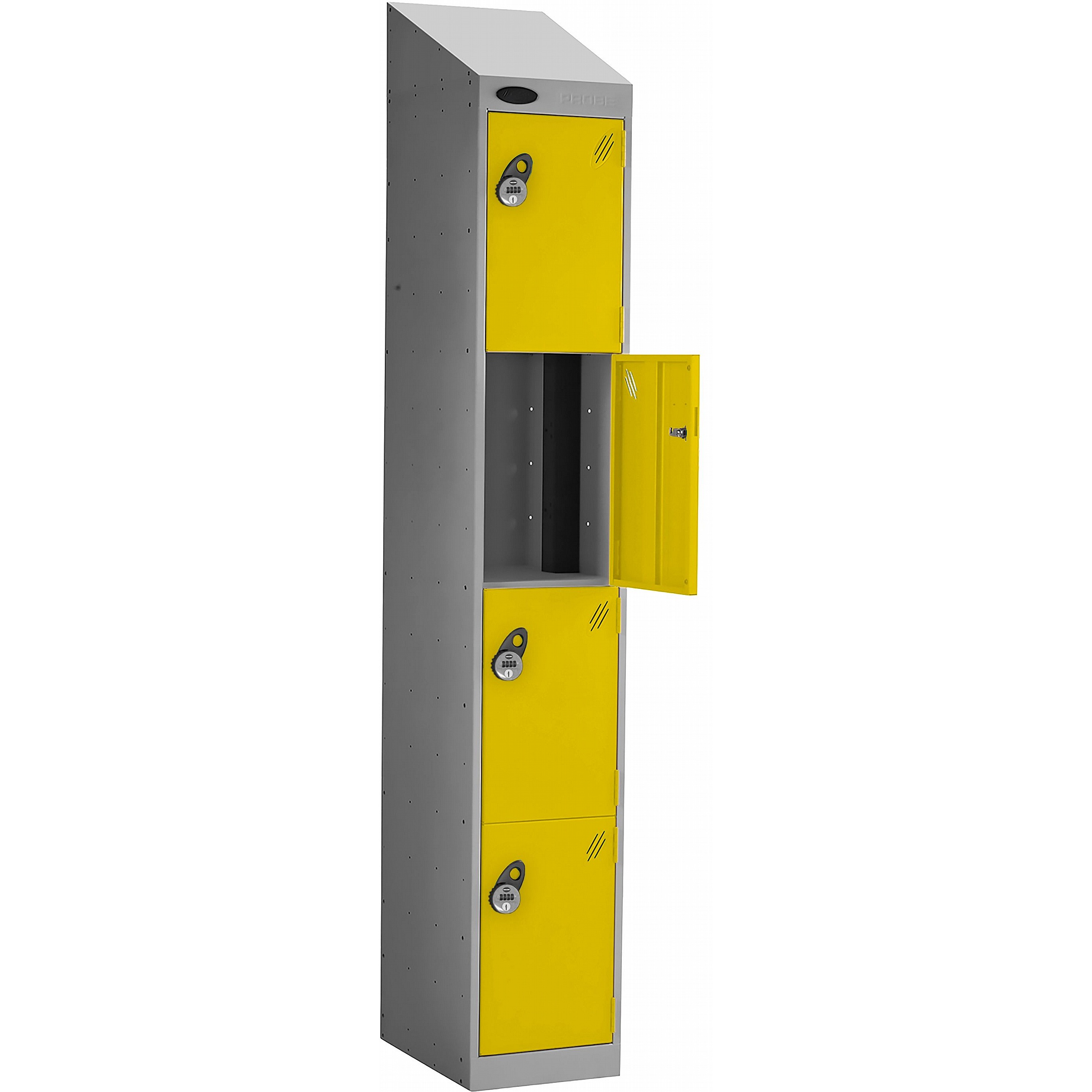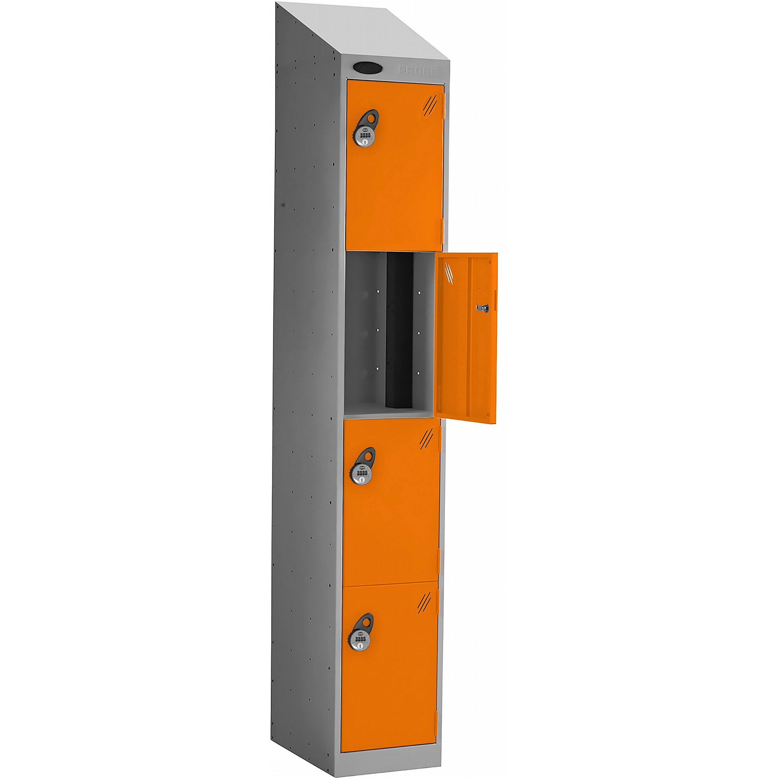 - The sloping top keeps the area tidy by making cleaning easier and preventing items from being placed and left on top of the locker.