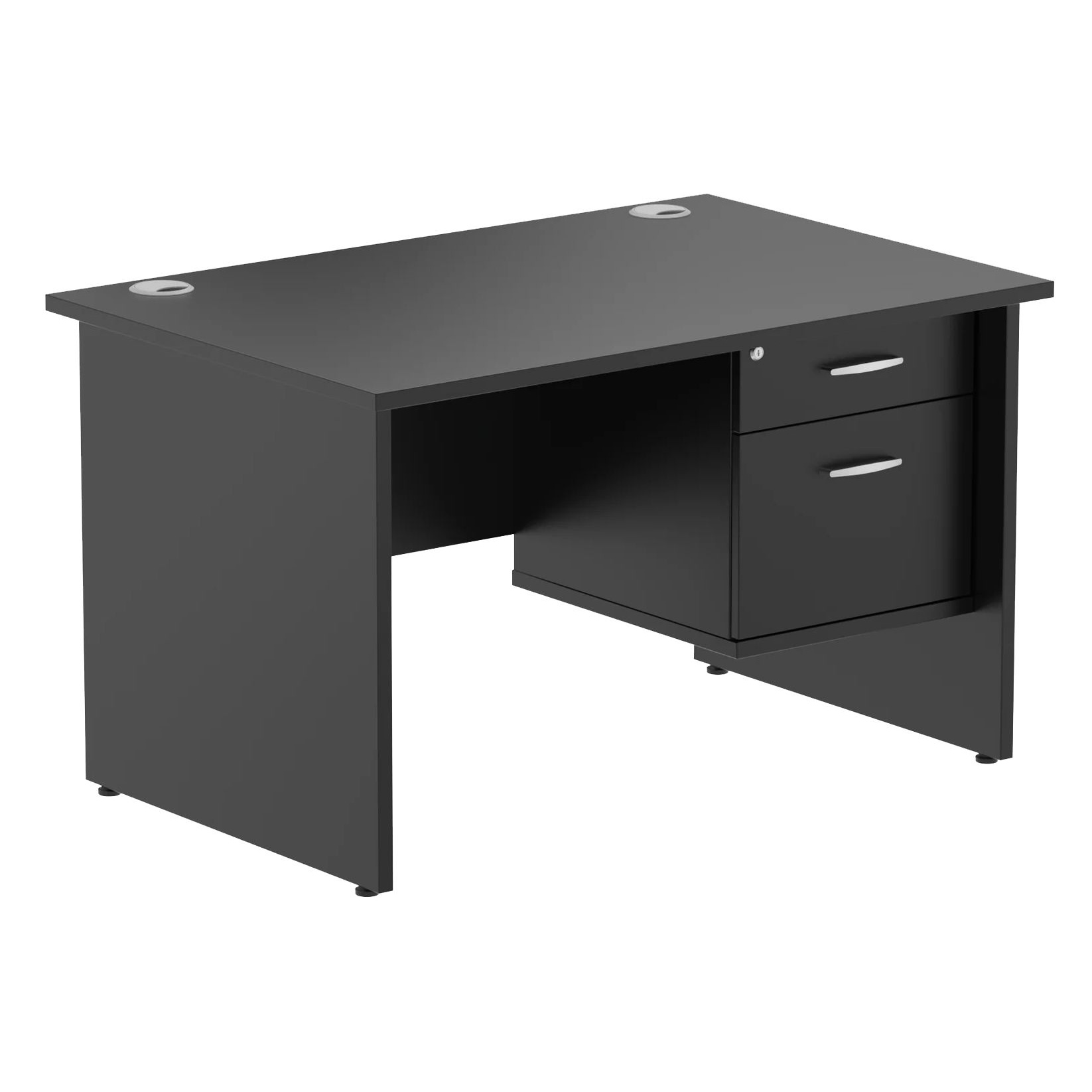 - Revel in our Raven black panel end rectangular office desk with single fixed drawers.