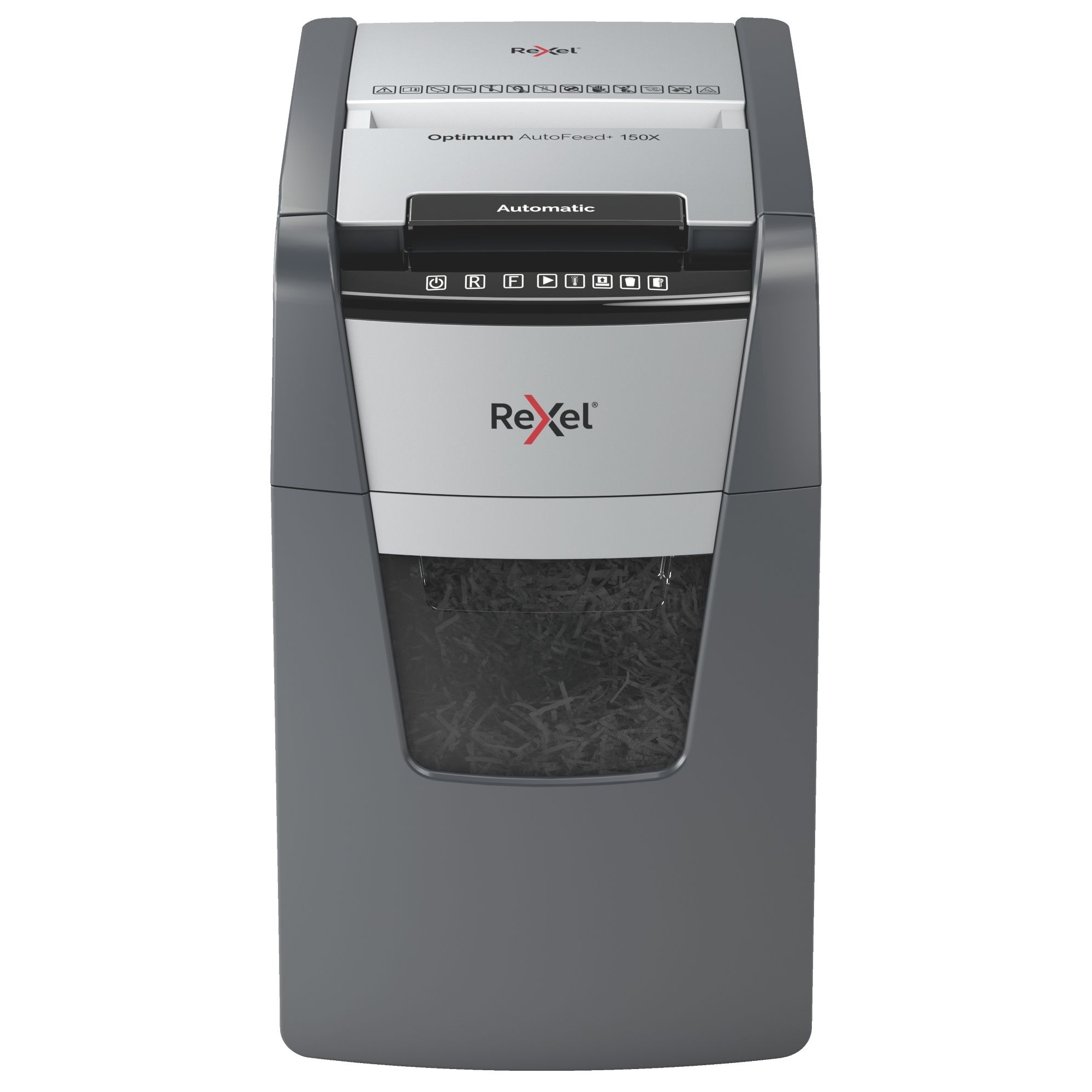 - The Rexel Optimum 150X Autofeed Plus Automatic Cross Cut Paper Shredder automatically shreds up to 150 sheets of A4 paper at a time.