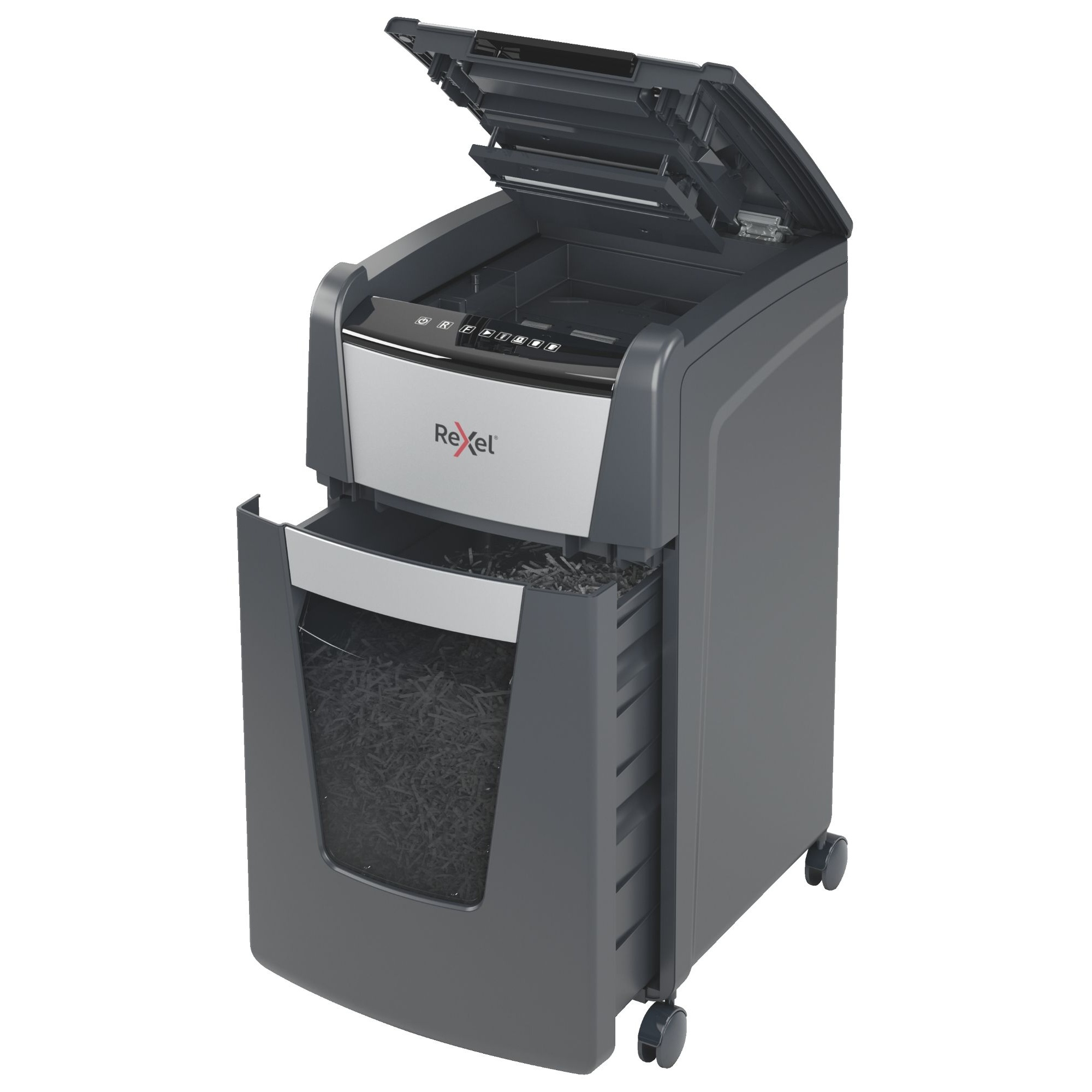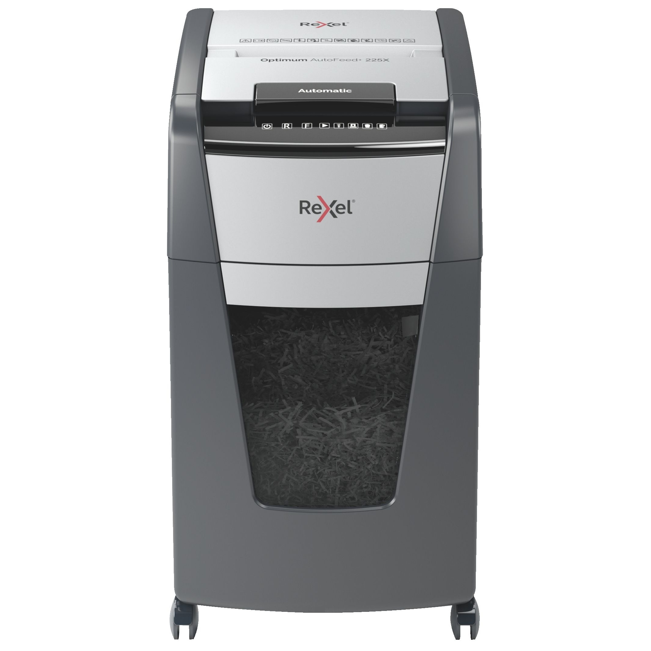 - The Rexel Optimum 225X Autofeed Plus Automatic Cross Cut Paper Shredder automatically shreds up to 225 sheets of A4 paper at a time.