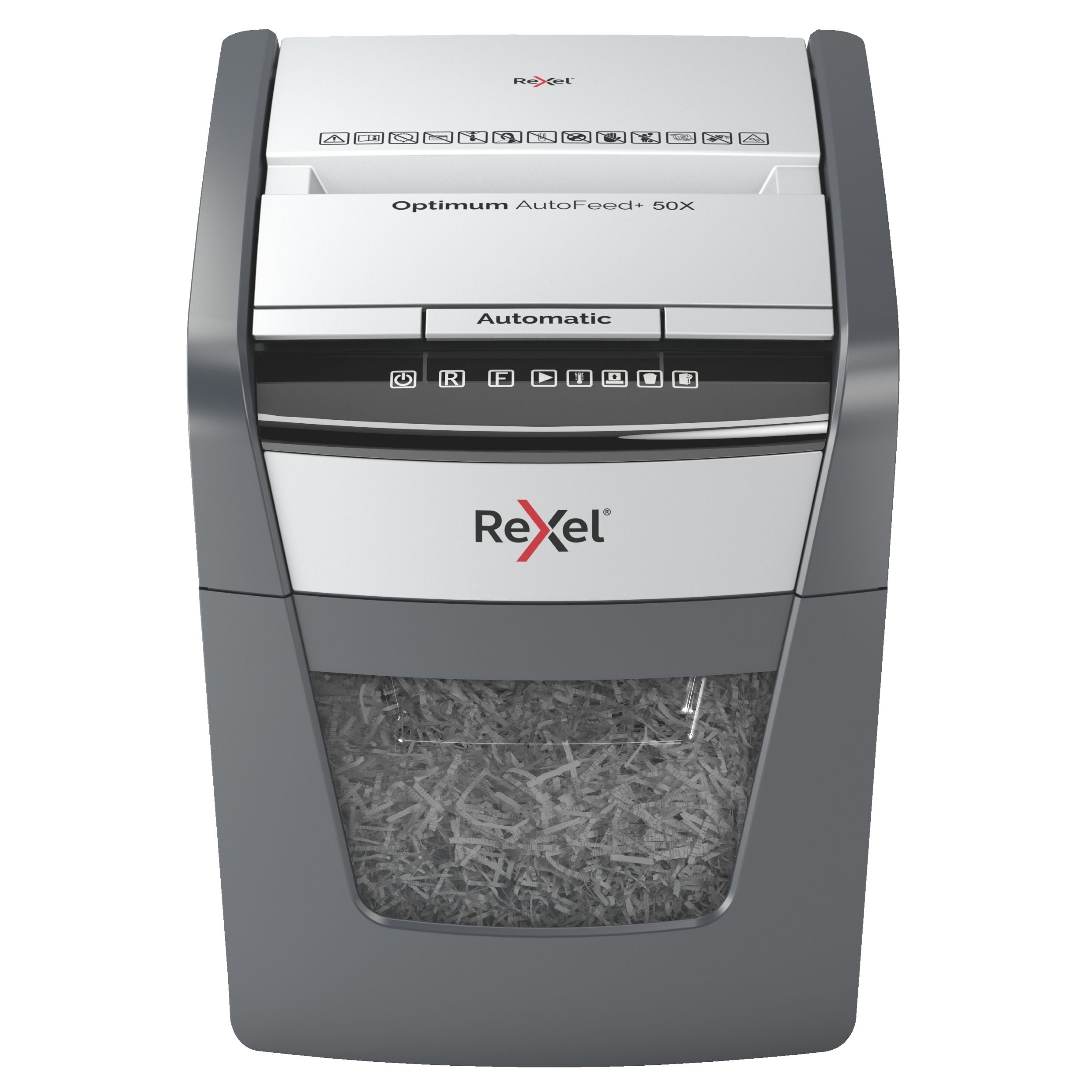 - The Rexel Optimum 50X Autofeed Plus Automatic Cross Cut Paper Shredder automatically shreds up to 50 sheets of A4 paper at a time.