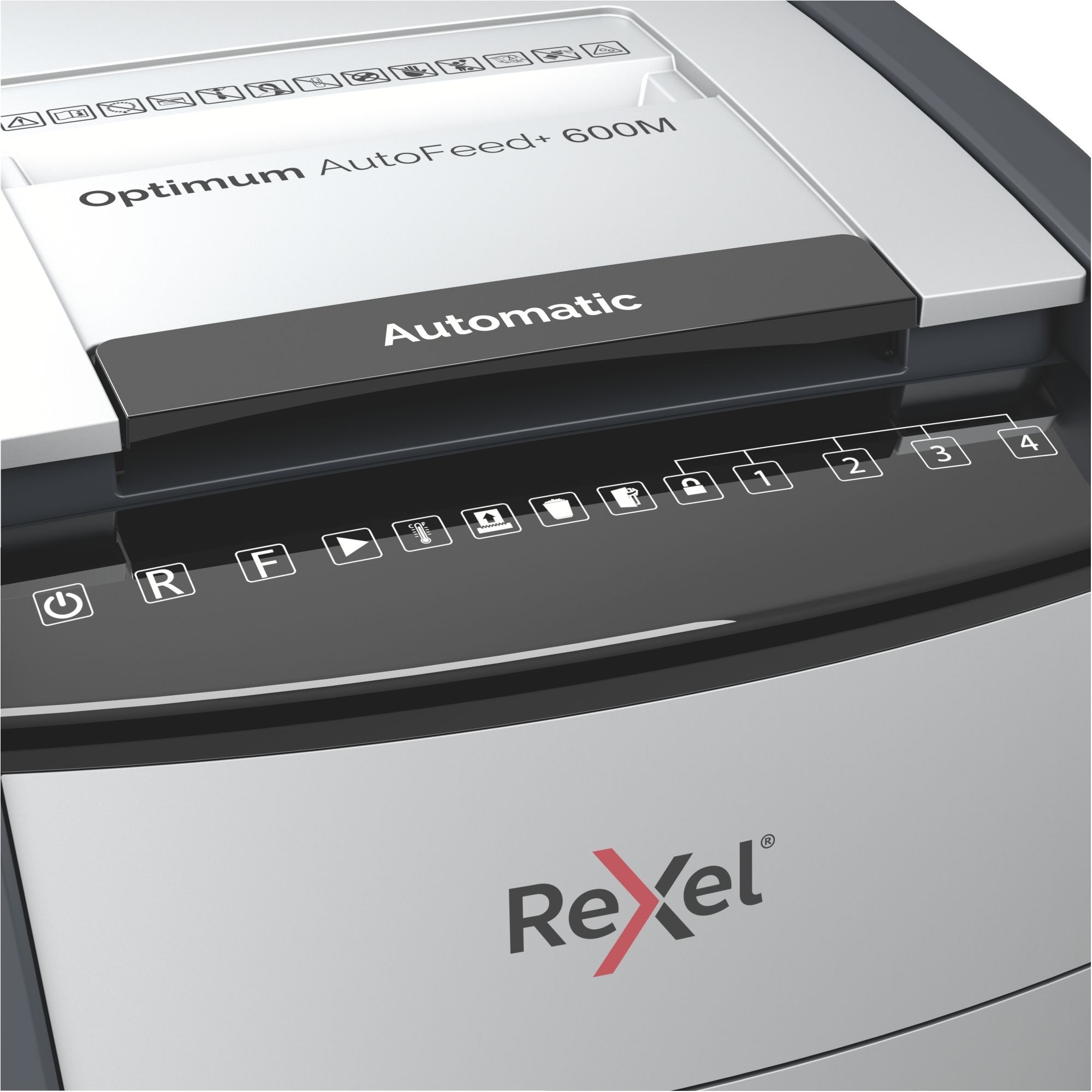 - The Rexel Optimum 600M Autofeed Plus Automatic Micro Cut Paper Shredder automatically shreds up to 600 sheets of A4 paper at a time.