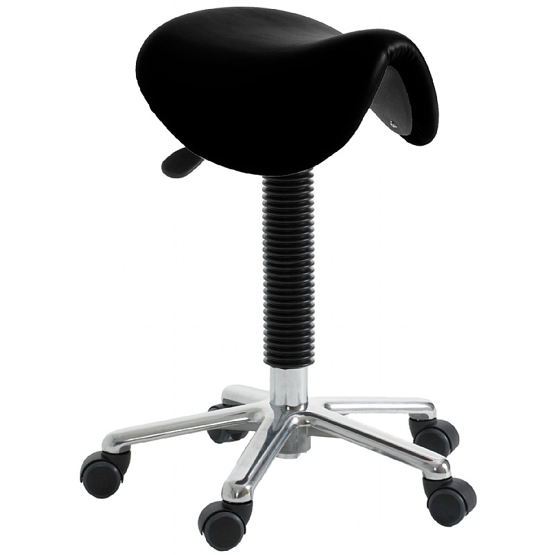Introducing our ergonomic saloon vinyl saddle plus stools, developed specifically for people who experience back discomfort when sitting. The stool's ergonomic design encourages an upright spine, reinforcing proper posture and reducing strain. It effectively lessens spinal disc pressure, enhancing overall comfort and allowing for a more productive day. Perfect for anyone looking to combine comfort with improved spinal health in their daily routine. This stool is ideal for usage with sit-stand desks as well as in doctors or dentist surgeries.Details