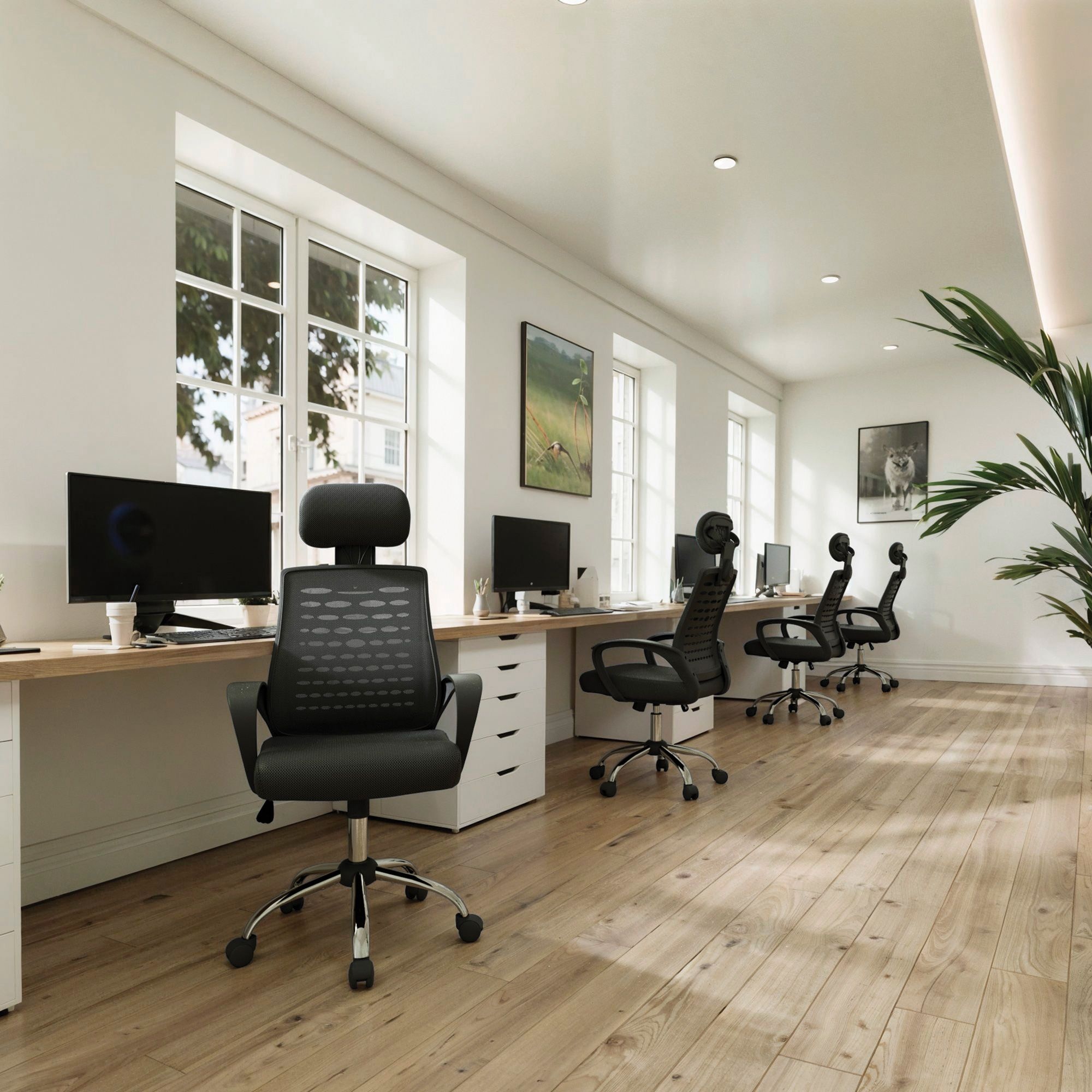 Upgrade your office with the Sigma high back mesh office chairs, designed to offer all-day comfort and durability at an exceptional price point. The adjustable headrest, high backrest with lumbar curvature, and fixed armrests provide excellent support for the entire body and the high quality mesh material keeps you cool and comfortable in every season. With a maximum weight capacity of 130kg and a rating for up to 10 hours of daily use, the Sigma truly represents outstanding value.Details