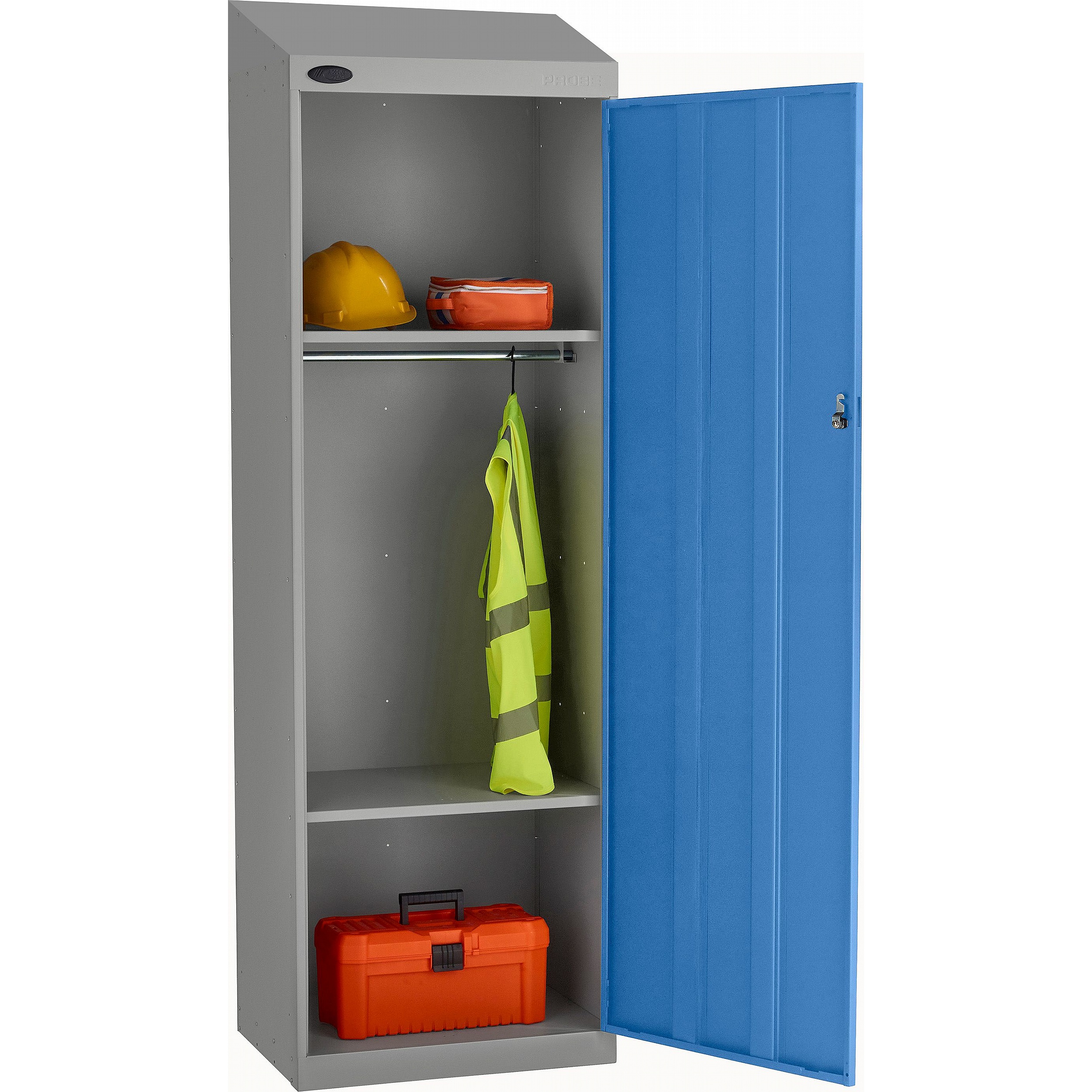 Stellar Probe antibacterial hi-capacity lockers are designed to provide extra-wide storage for bulky clothing, workwear, PPE, equipment, and more. Perfect for use in a range of workplace and industrial settings, these lockers offer generous compartment space for environments where standard lockers simply aren't enough. Each unit features a reinforced full-width top shelf for headwear, bags, and smaller items, a heavy-duty hanging rail for garments and protective equipment, and a fixed lower shelf to keep footwear and other equipment organised and easily accessible. Manufactured in the UK, Probe lockers feature ActiveCoat antibacterial powder coating for use within the most stringent hygienic environments. This helps prevent the growth and transfer of potentially harmful bacteria, mould, fungi, algae etc. And, for peace of mind, these lockers include a 7-year manufacturers guarantee.Details