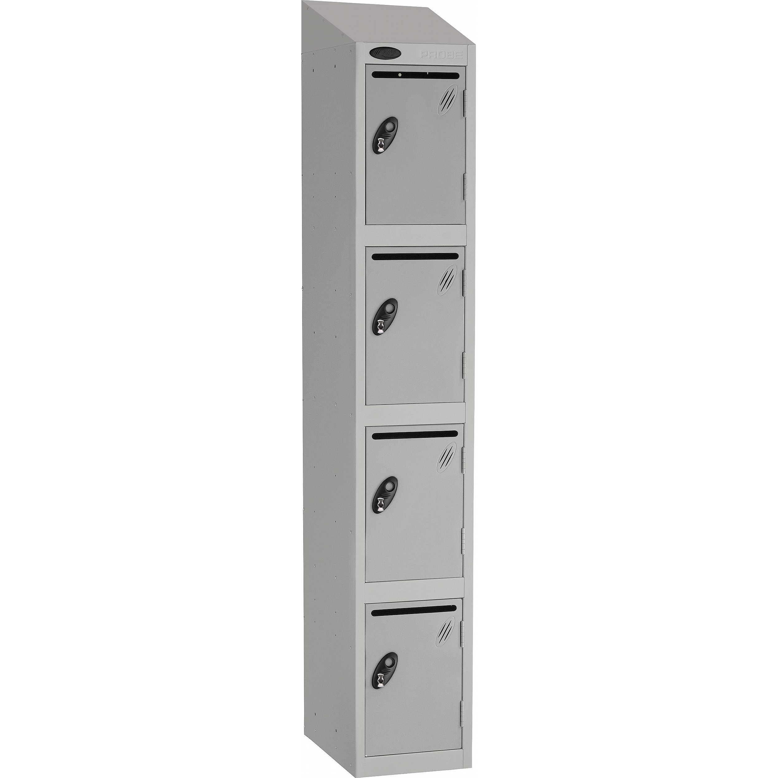 - The sloping top keeps the area tidy by making cleaning easier and preventing items from being placed and left on top of the locker.