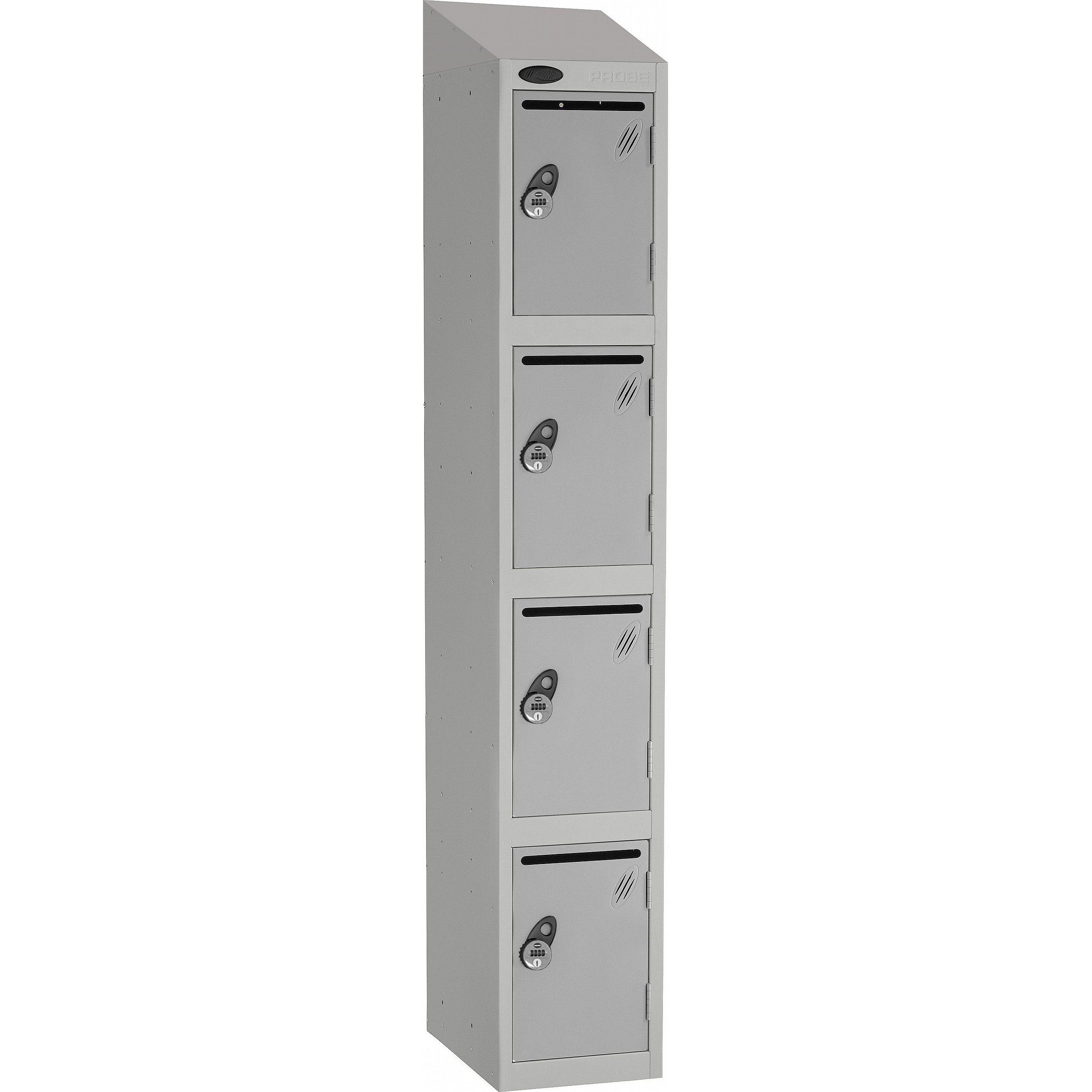 - The sloping top keeps the area tidy by making cleaning easier and preventing items from being placed and left on top of the locker.