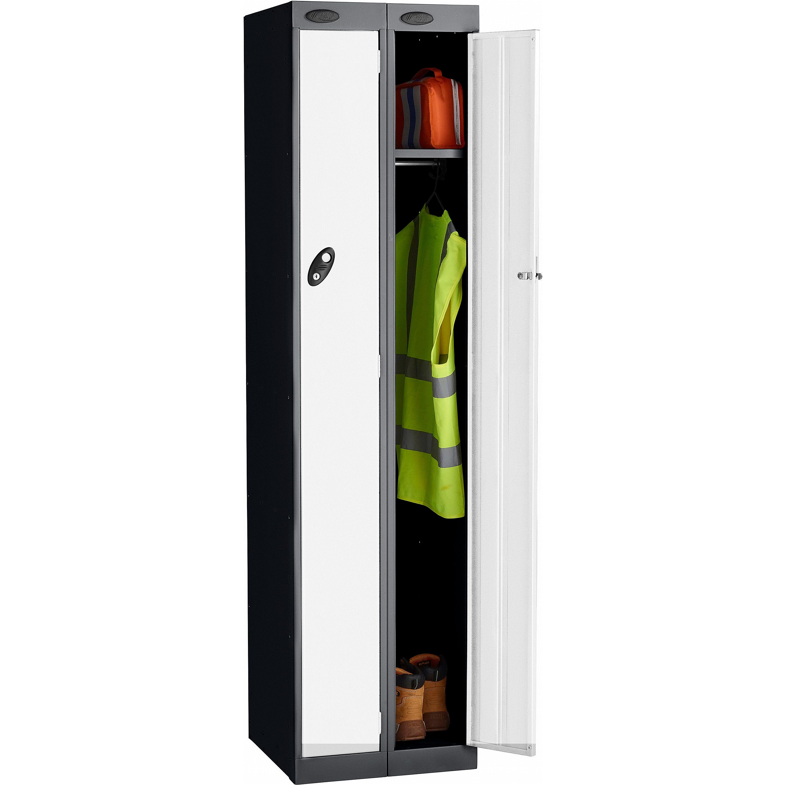 Stellar Probe antibacterial twin lockers are designed to provide compact full-height compartment storage for two users or for dual-purpose applications. Perfect for use in a range of workplace and industrial settings, these lockers maximise storage capacity while minimising floor space for environments where space is at a premium. Each compartment features a convenient top shelf for smaller items, with a spacious lower section equipped with a hanging rail and coat hook, ideal for garments, footwear, and larger equipment. Manufactured in the UK, Probe lockers feature ActiveCoat antibacterial powder coating for use within the most stringent hygienic environments. This helps prevent the growth and transfer of potentially harmful bacteria, mould, fungi, algae etc. And, for peace of mind, these lockers include a 7-year manufacturers guarantee.Details