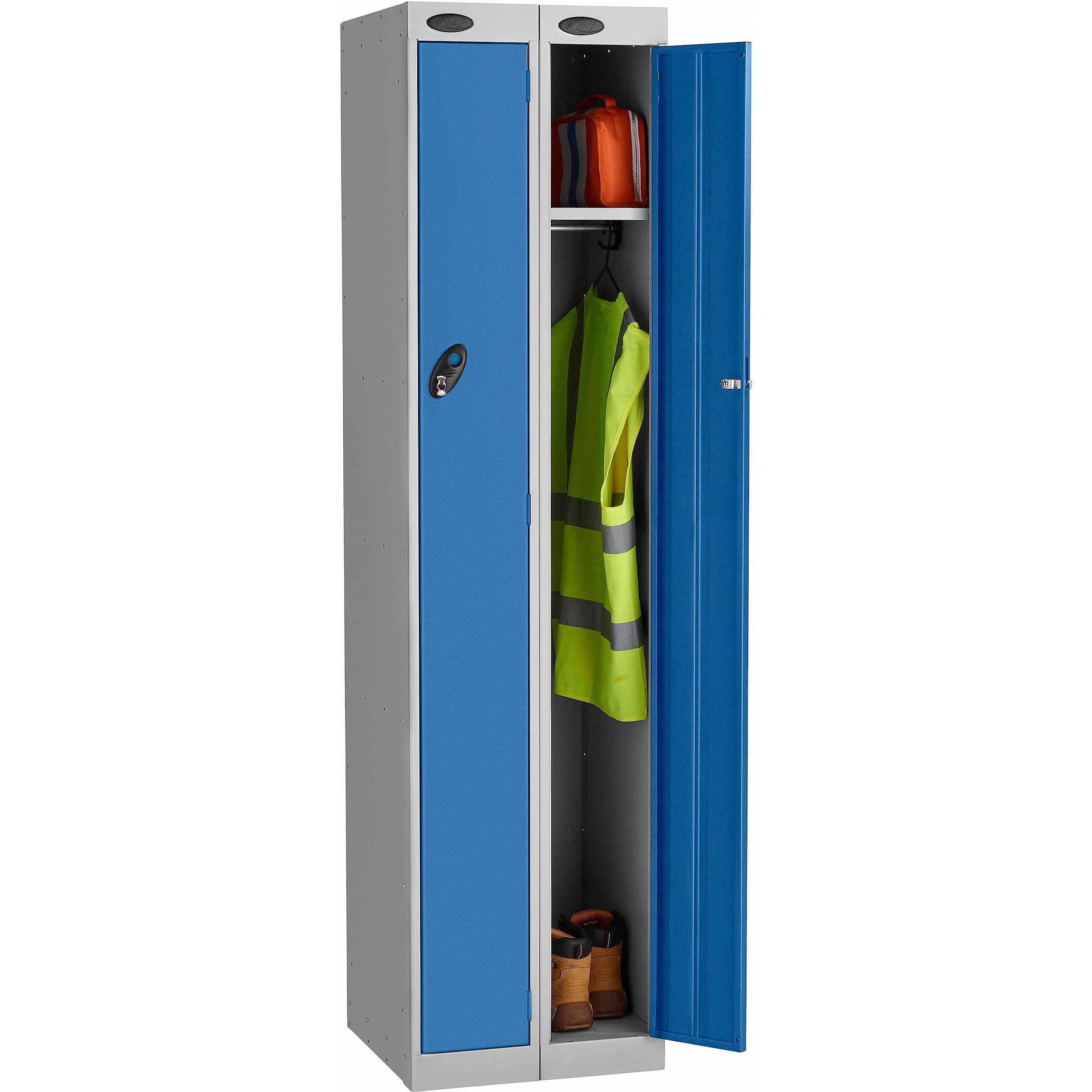 Stellar Probe antibacterial twin lockers are designed to provide compact full-height compartment storage for two users or for dual-purpose applications. Perfect for use in a range of workplace and industrial settings, these lockers maximise storage capacity while minimising floor space for environments where space is at a premium. Each compartment features a convenient top shelf for smaller items, with a spacious lower section equipped with a hanging rail and coat hook, ideal for garments, footwear, and larger equipment. Manufactured in the UK, Probe lockers feature ActiveCoat antibacterial powder coating for use within the most stringent hygienic environments. This helps prevent the growth and transfer of potentially harmful bacteria, mould, fungi, algae etc. And, for peace of mind, these lockers include a 7-year manufacturers guarantee.Details