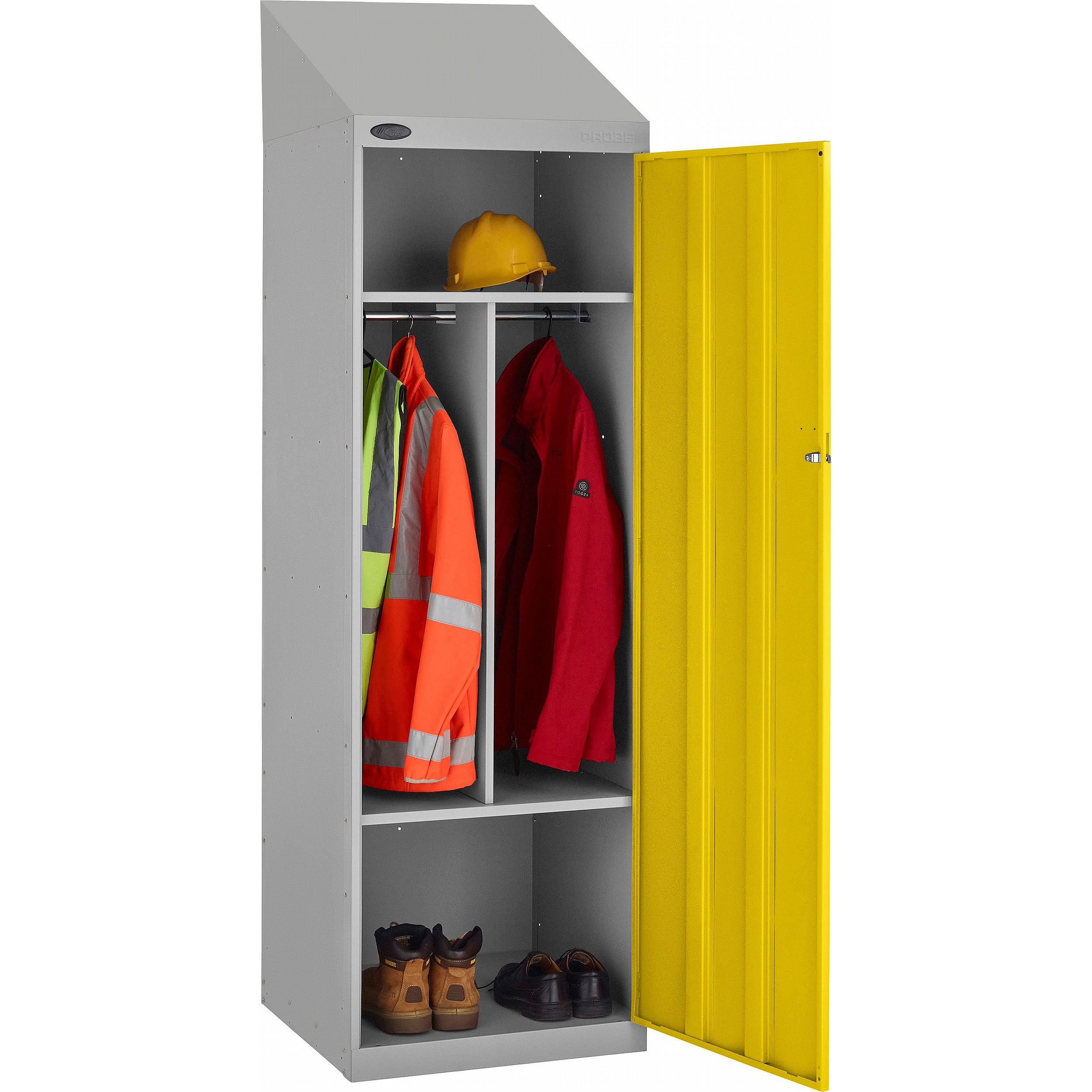 - The sloping top keeps the area tidy by making cleaning easier and preventing items from being placed and left on top of the locker.
