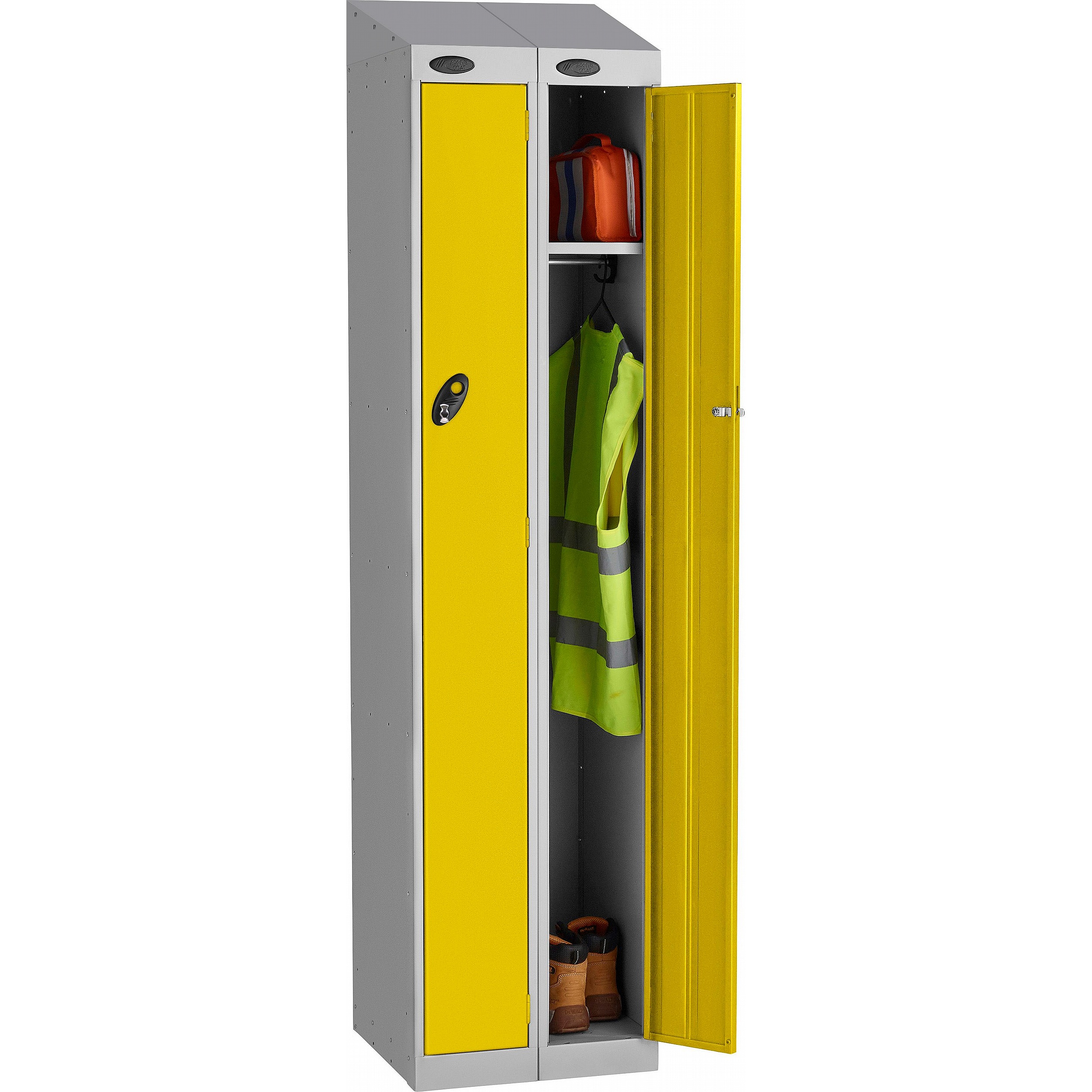 Stellar Probe antibacterial twin lockers are designed to provide compact full-height compartment storage for two users or for dual-purpose applications. Perfect for use in a range of workplace and industrial settings, these lockers maximise storage capacity while minimising floor space for environments where space is at a premium. Each compartment features a convenient top shelf for smaller items, with a spacious lower section equipped with a hanging rail and coat hook, ideal for garments, footwear, and larger equipment. Manufactured in the UK, Probe lockers feature ActiveCoat antibacterial powder coating for use within the most stringent hygienic environments. This helps prevent the growth and transfer of potentially harmful bacteria, mould, fungi, algae etc. And, for peace of mind, these lockers include a 7-year manufacturers guarantee.Details
