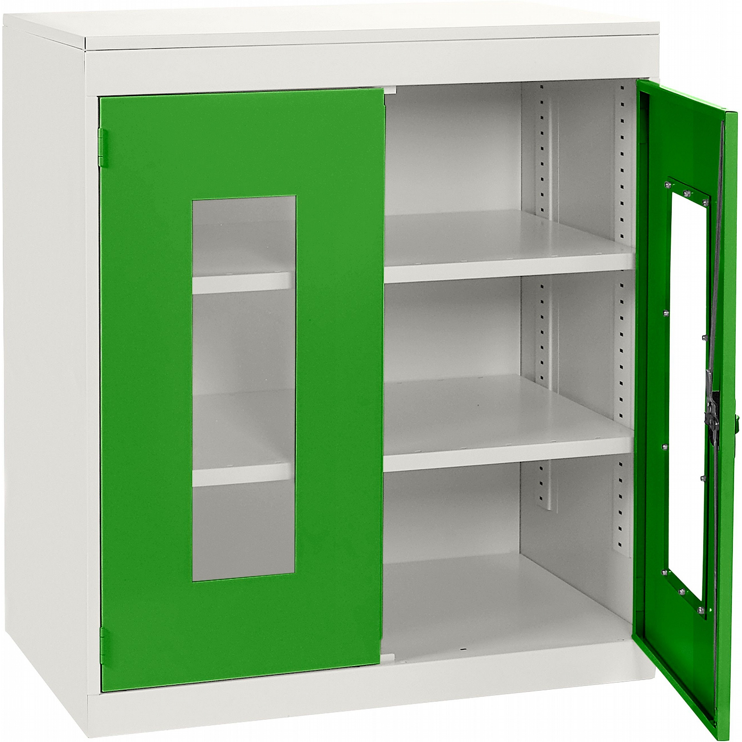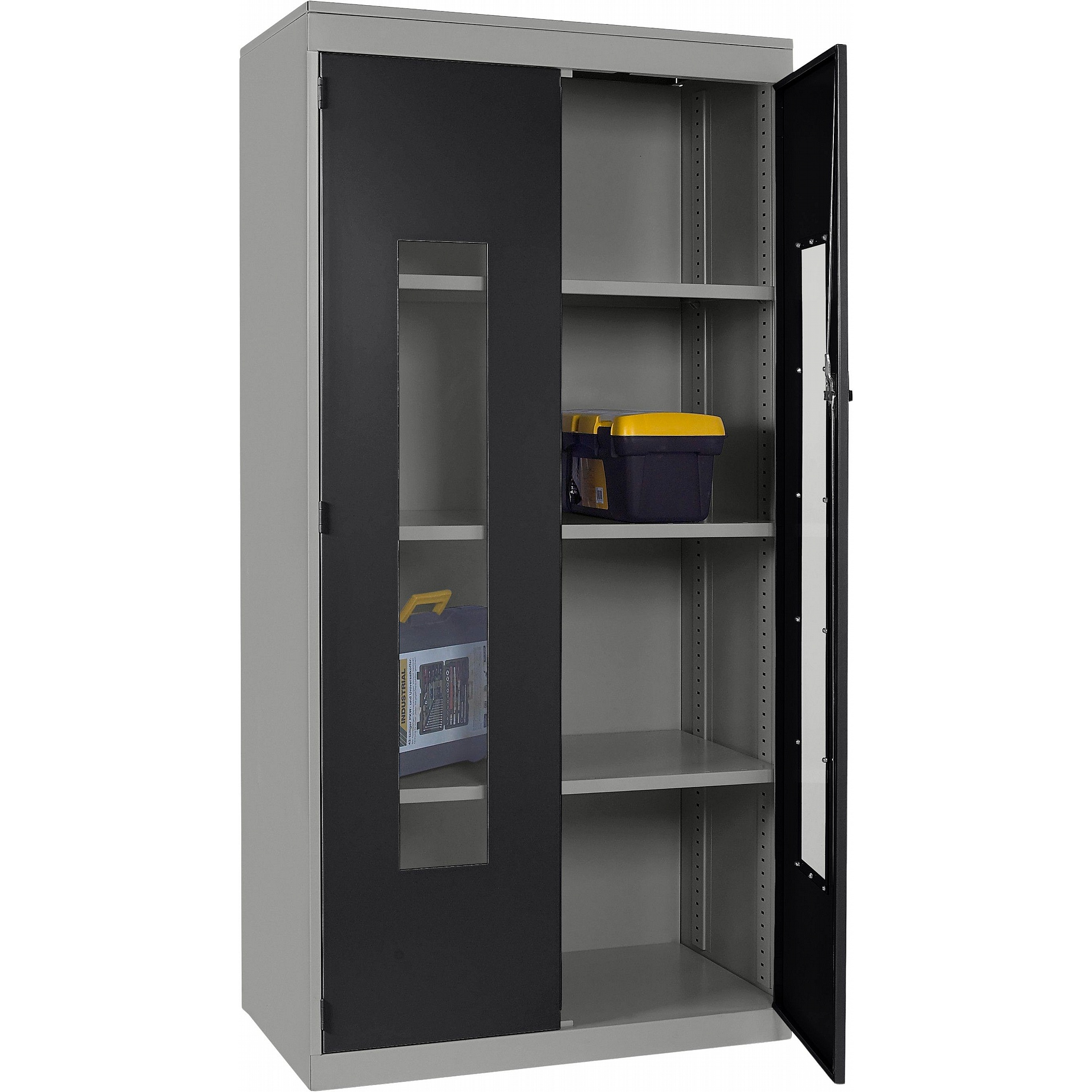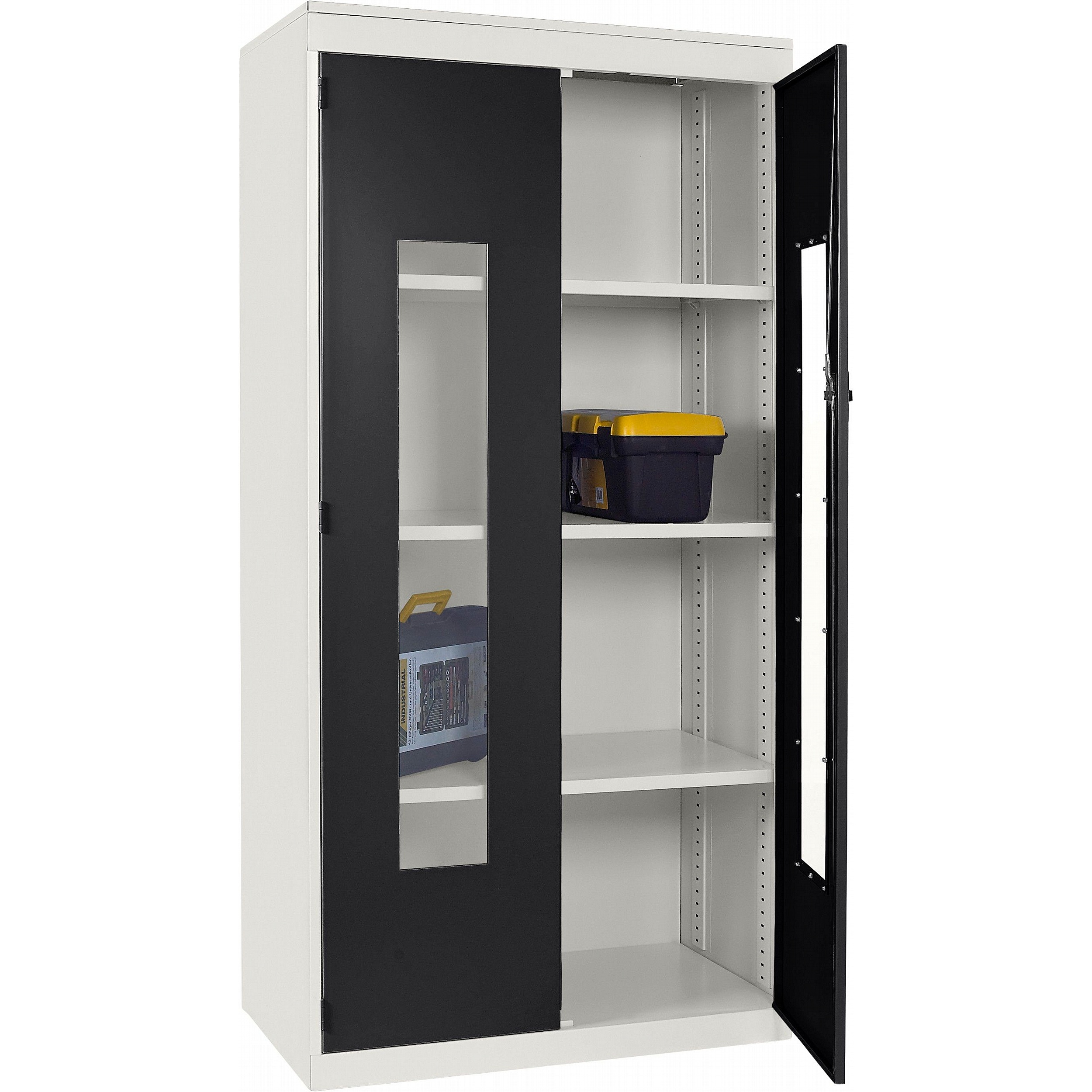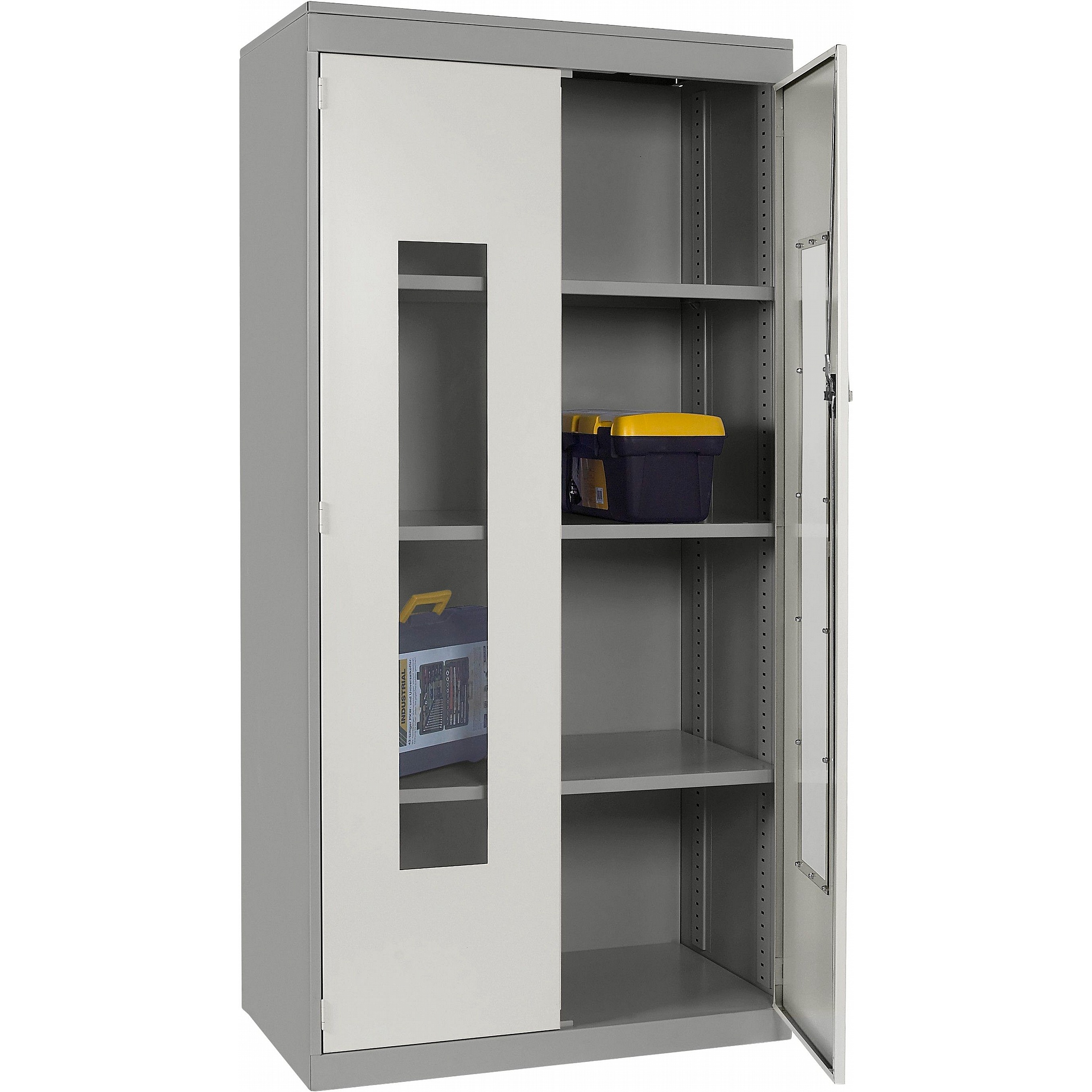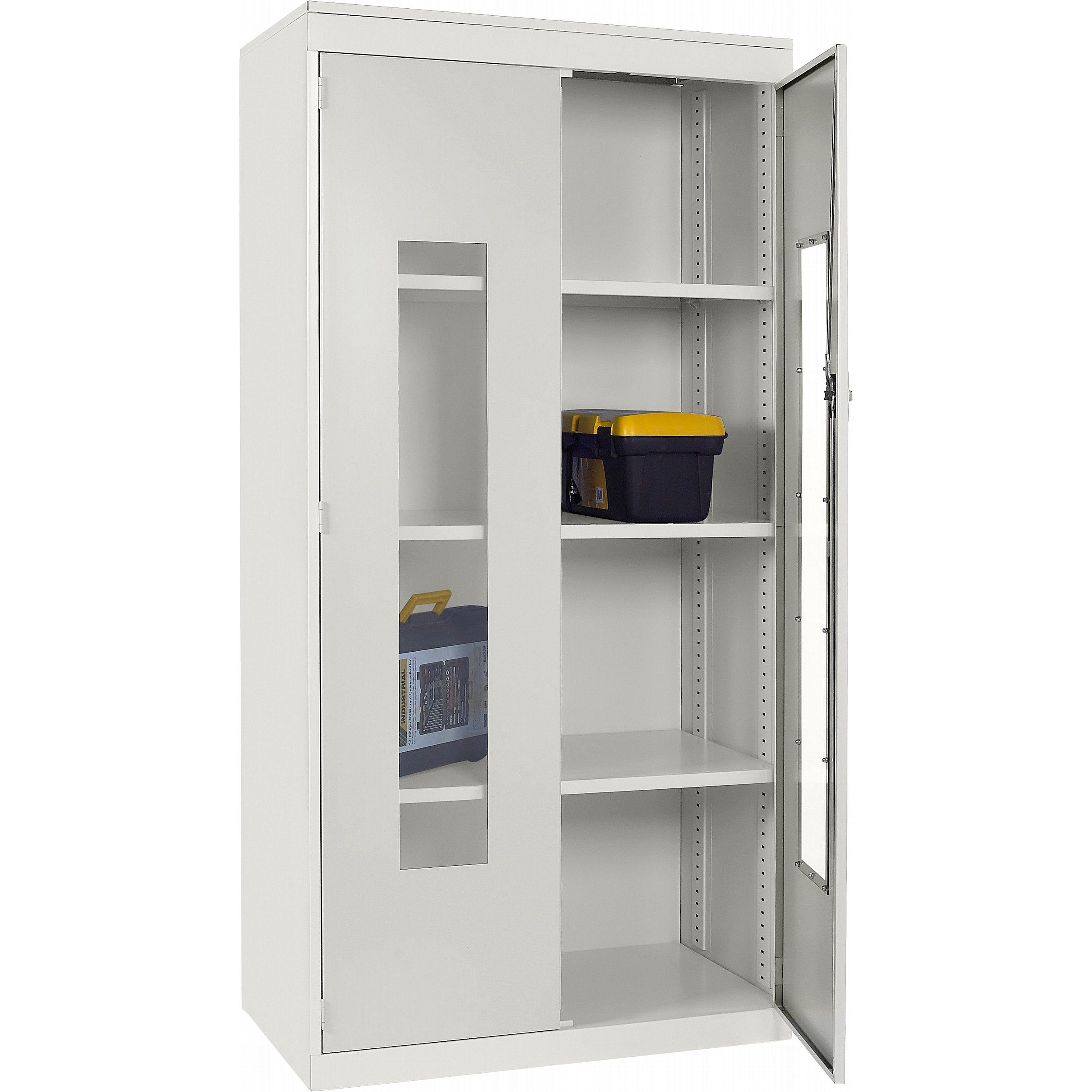 - Clear polycarbonate panels in each door allow you to see what’s inside at a glance, saving time and supporting a well-organised workplace.