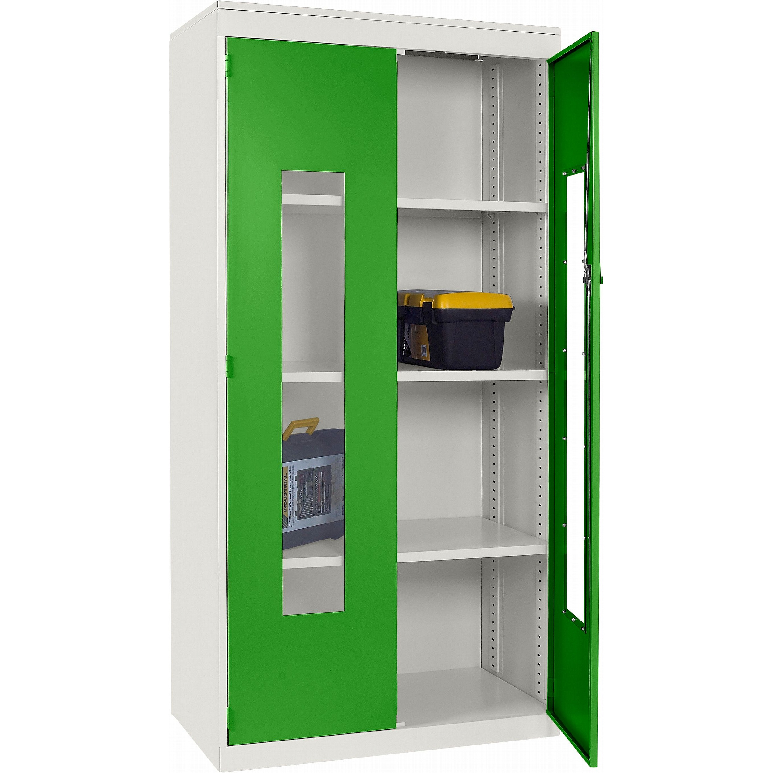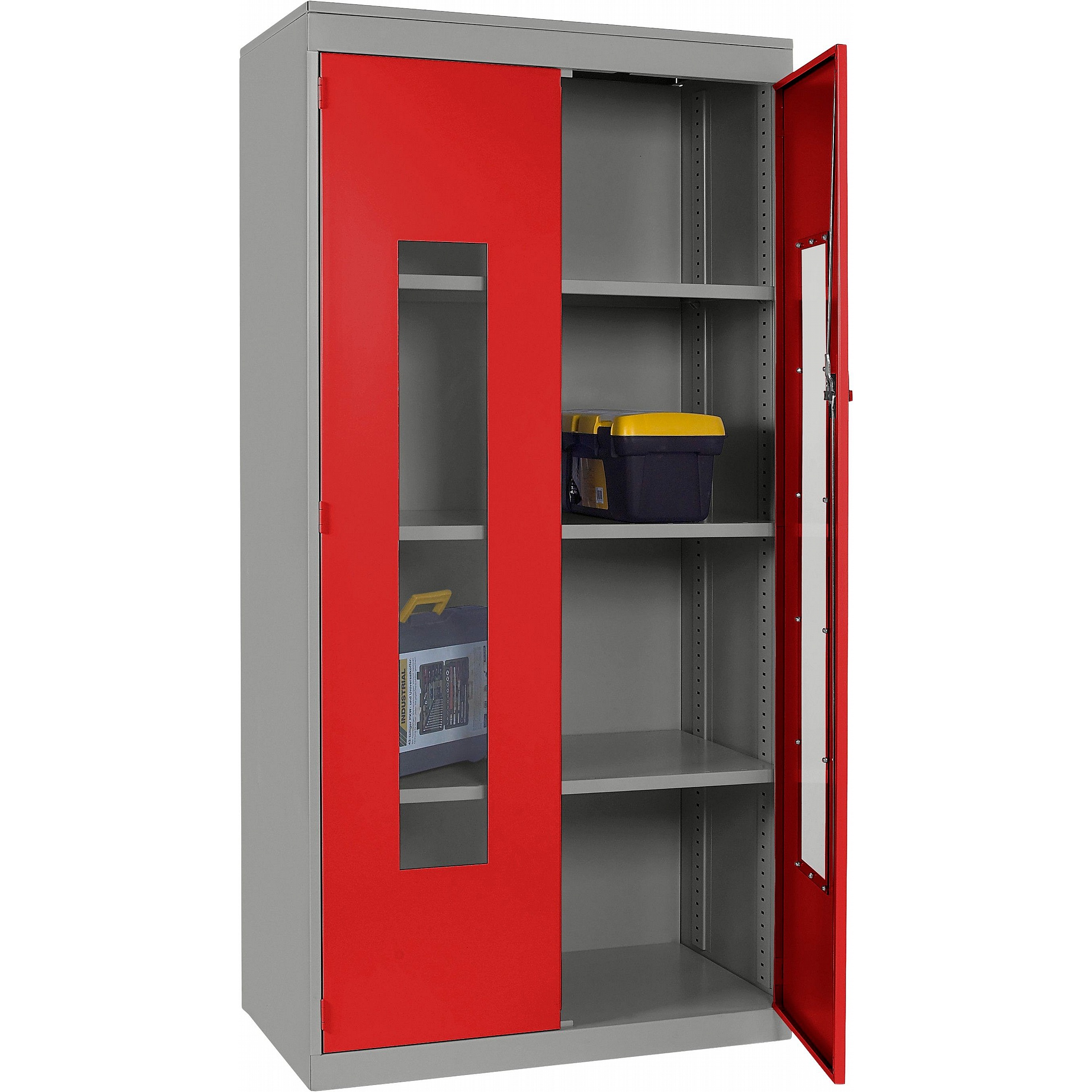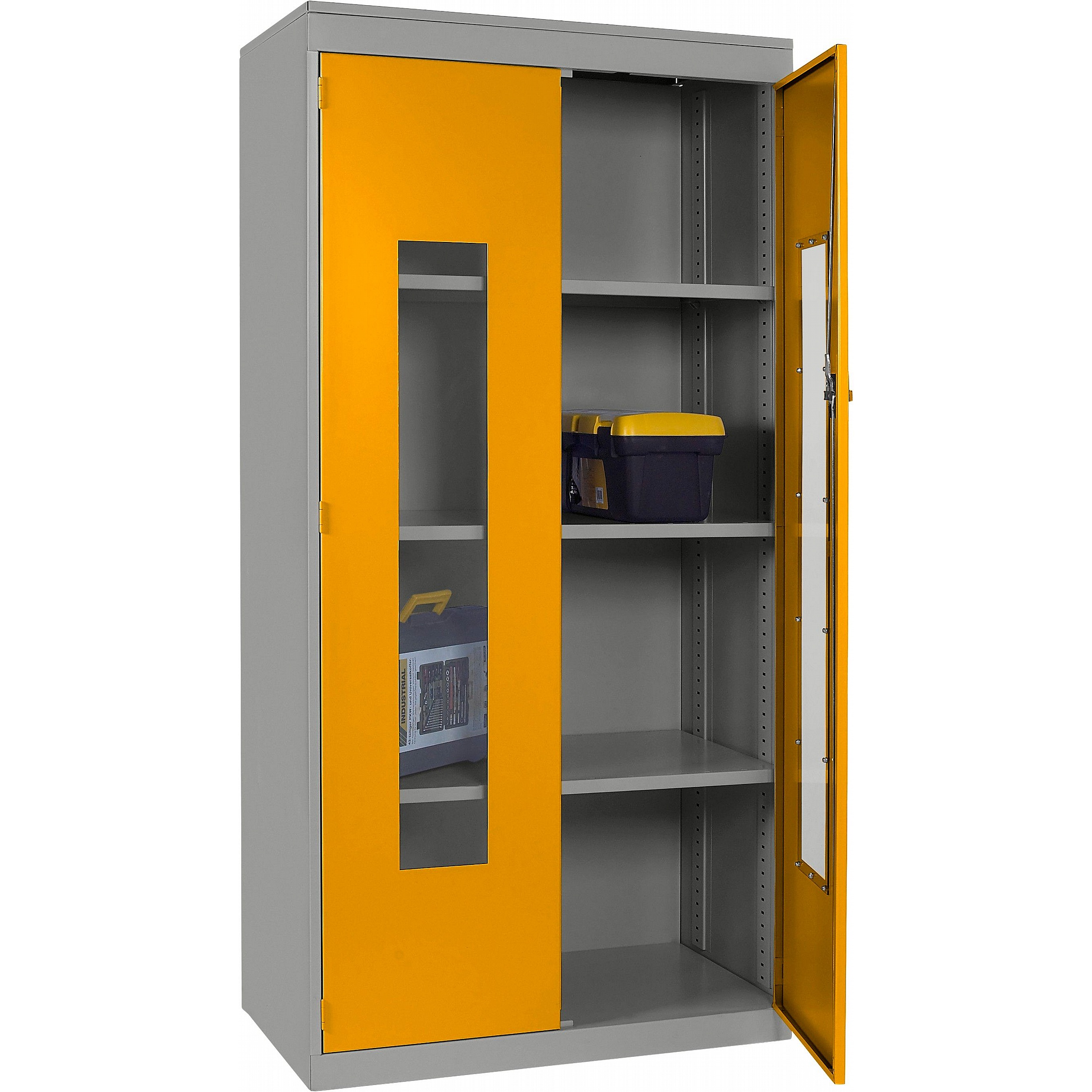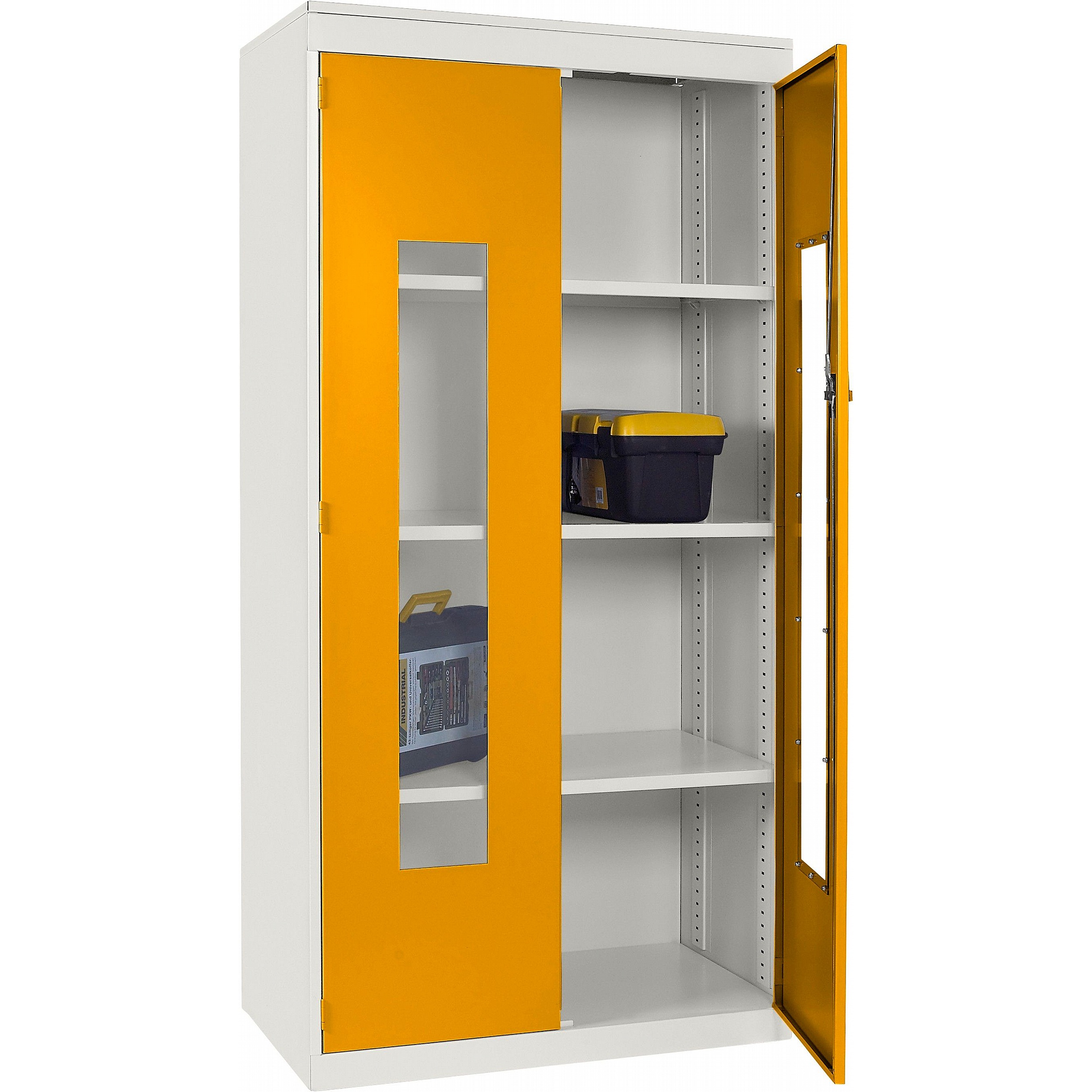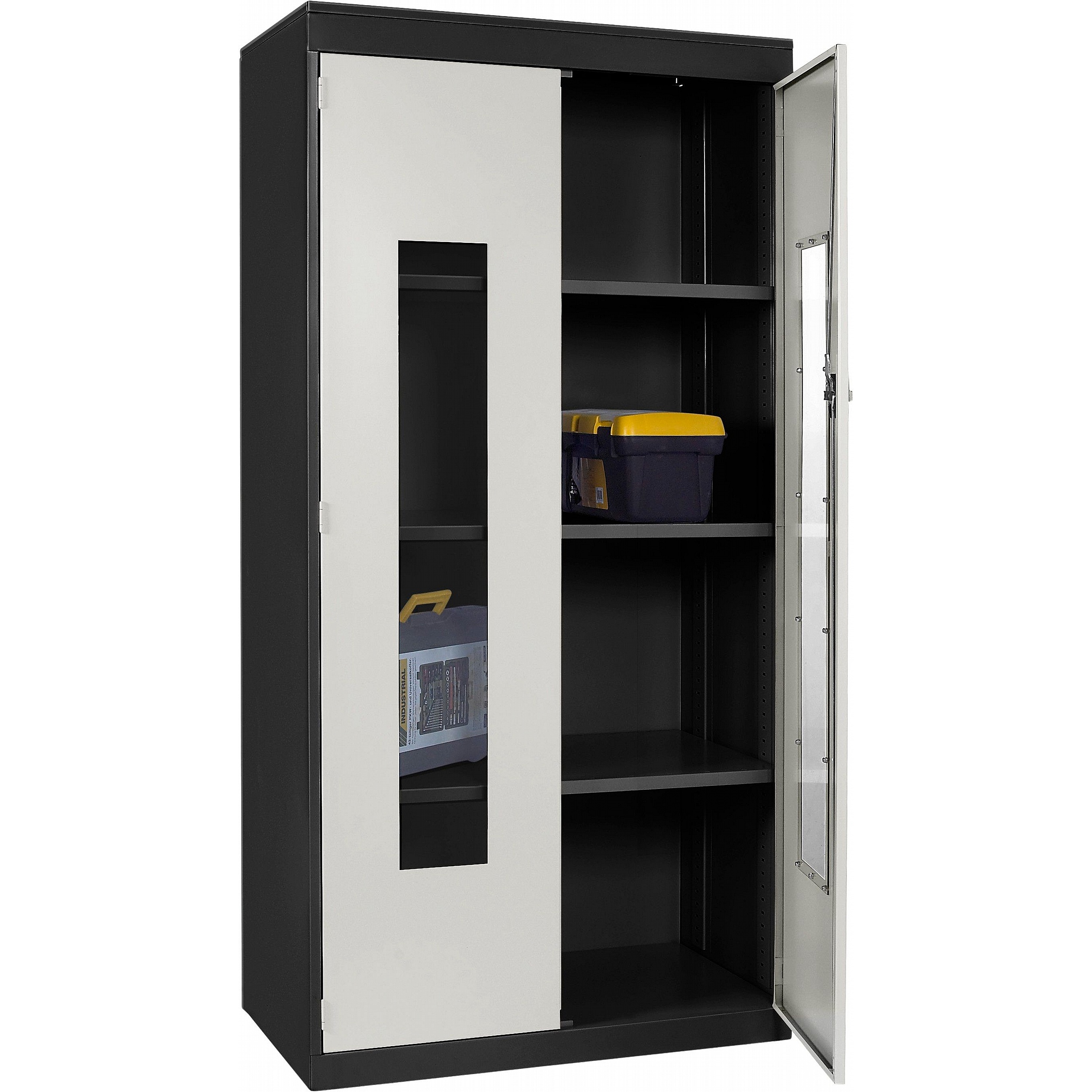 - Clear polycarbonate panels in each door allow you to see what’s inside at a glance, saving time and supporting a well-organised workplace.