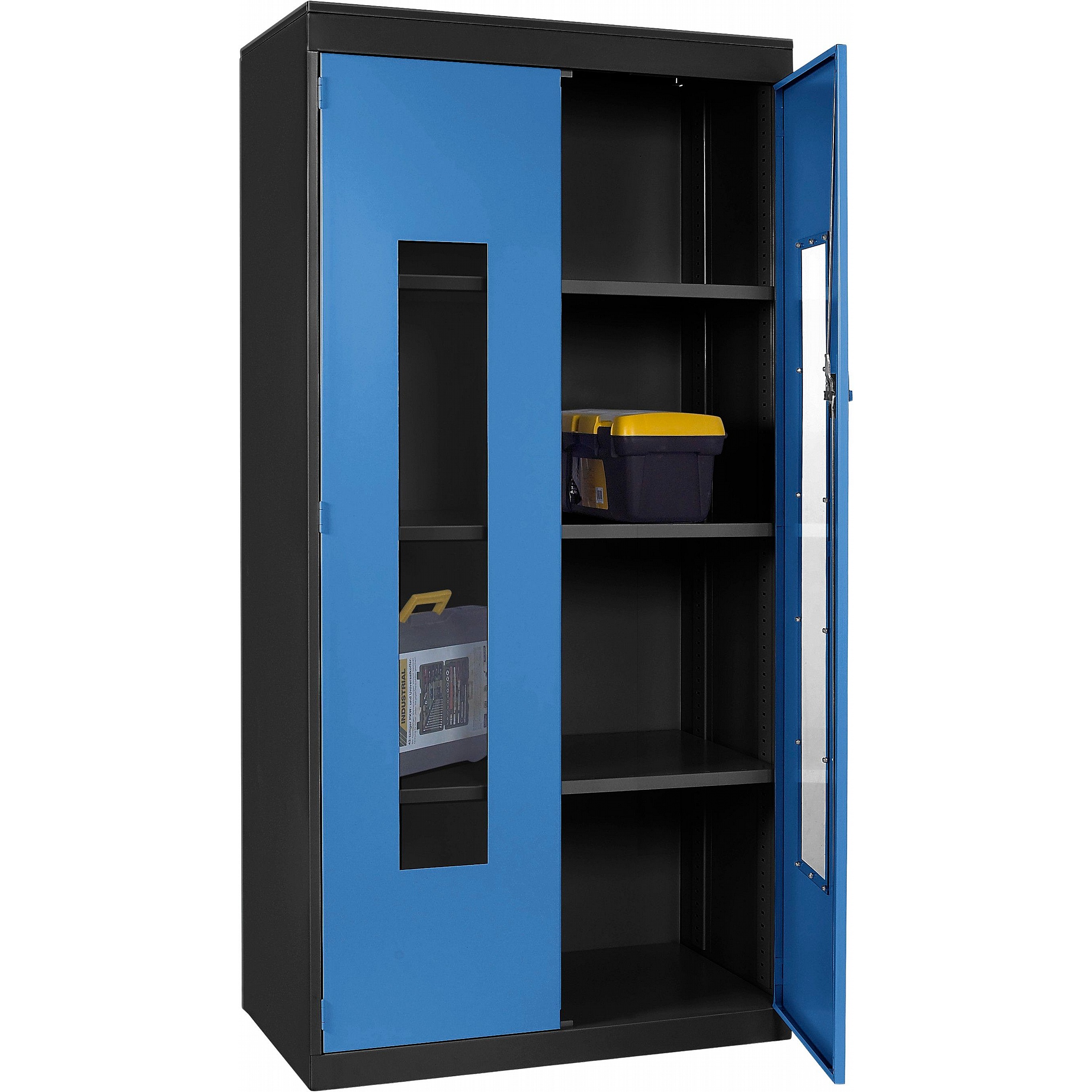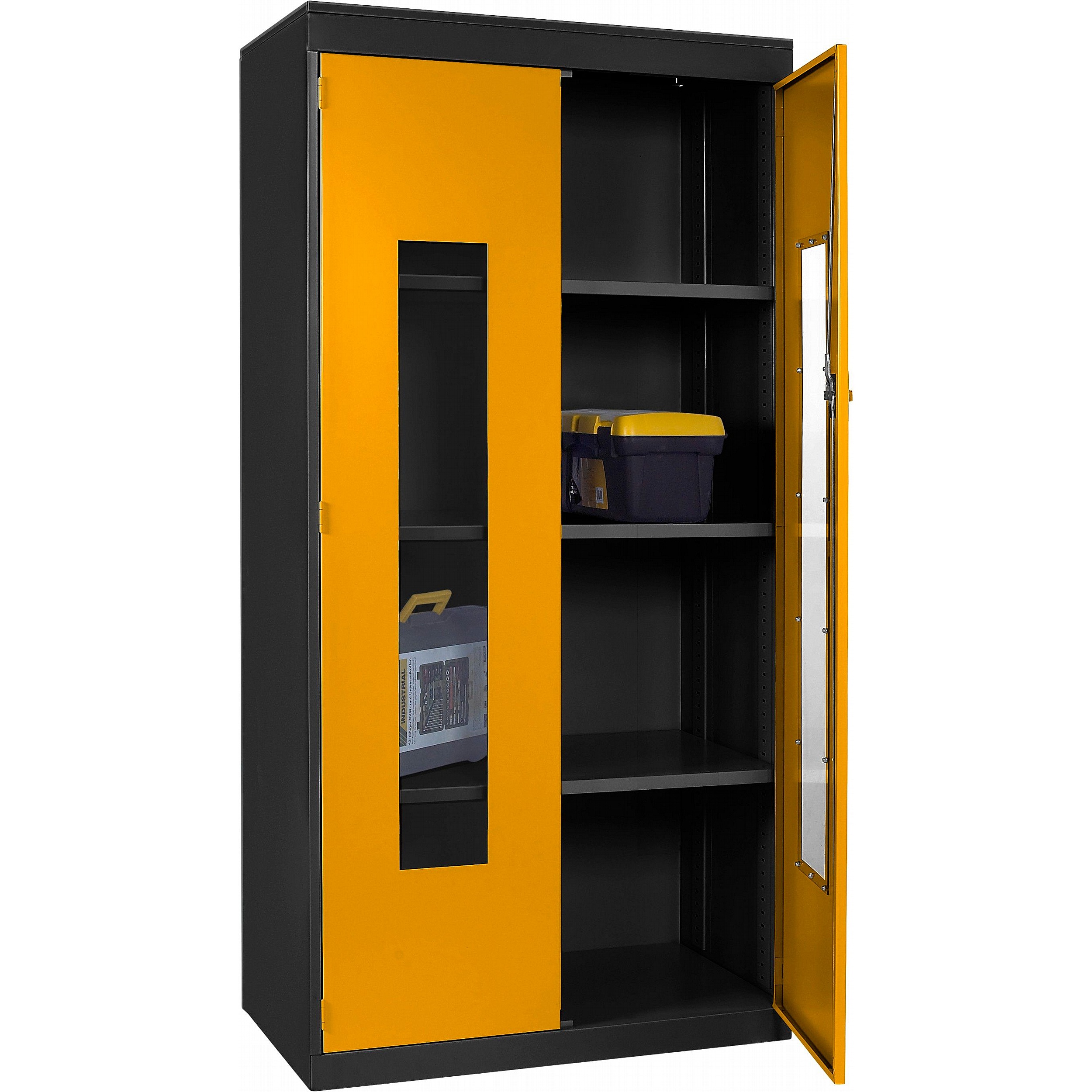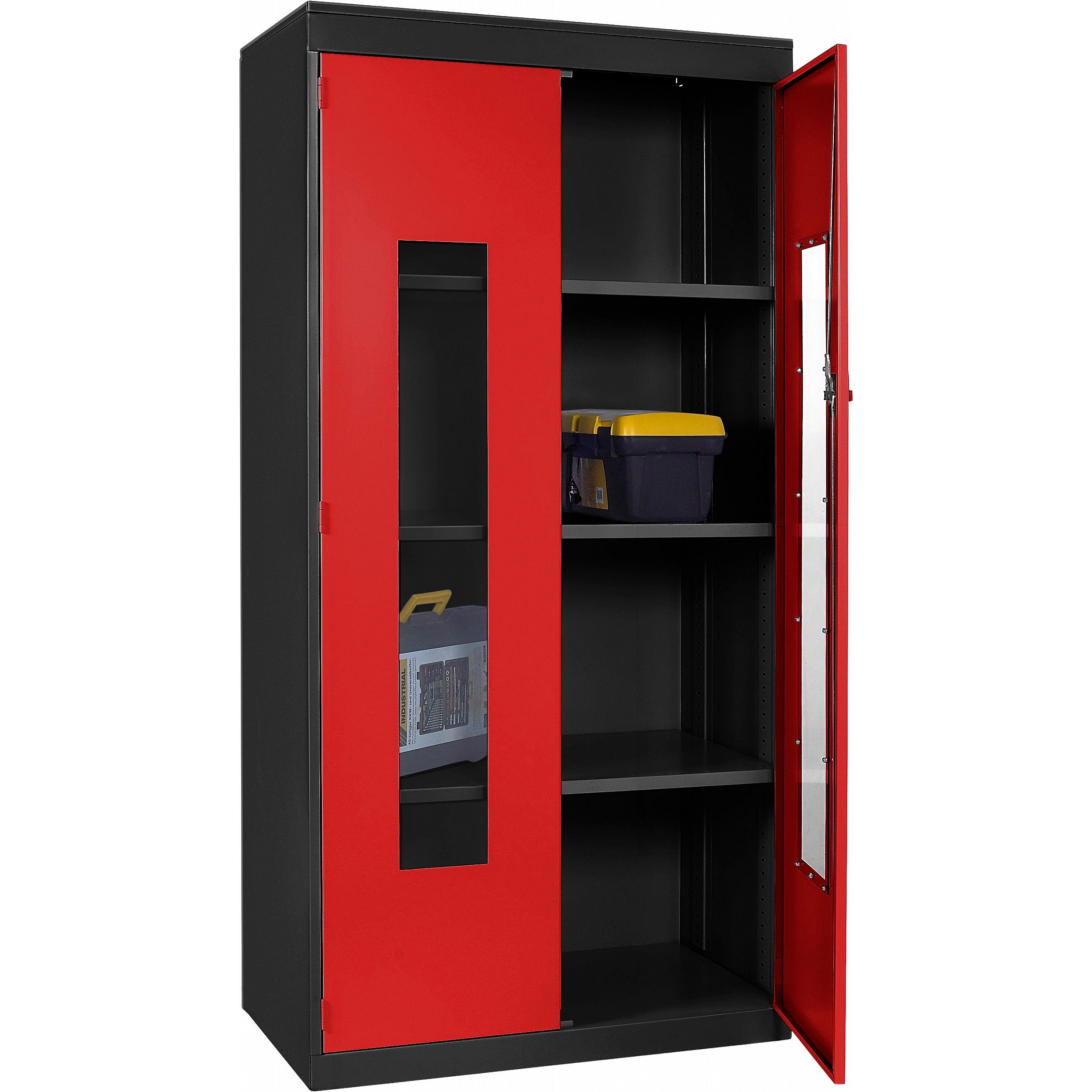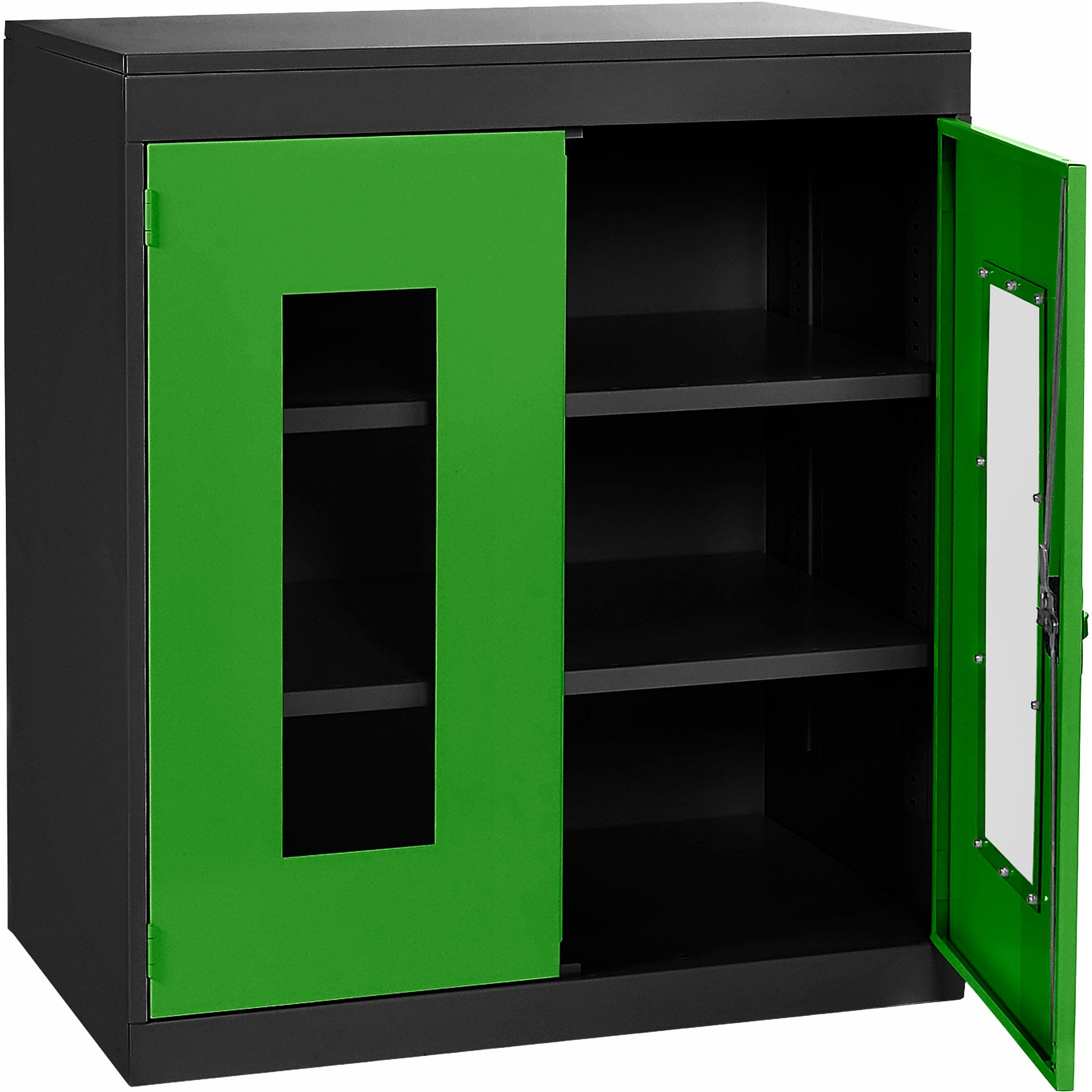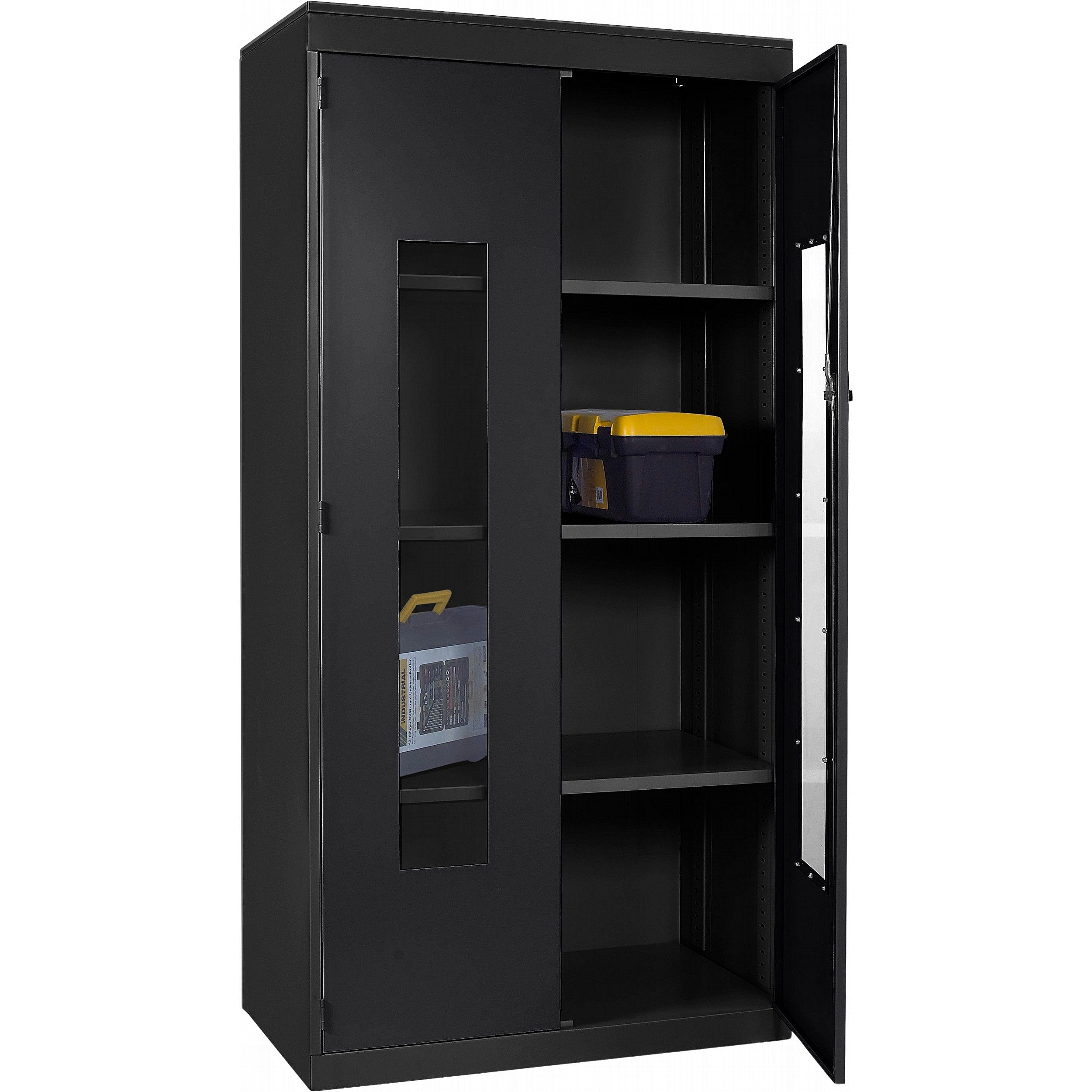 - Clear polycarbonate panels in each door allow you to see what’s inside at a glance, saving time and supporting a well-organised workplace.