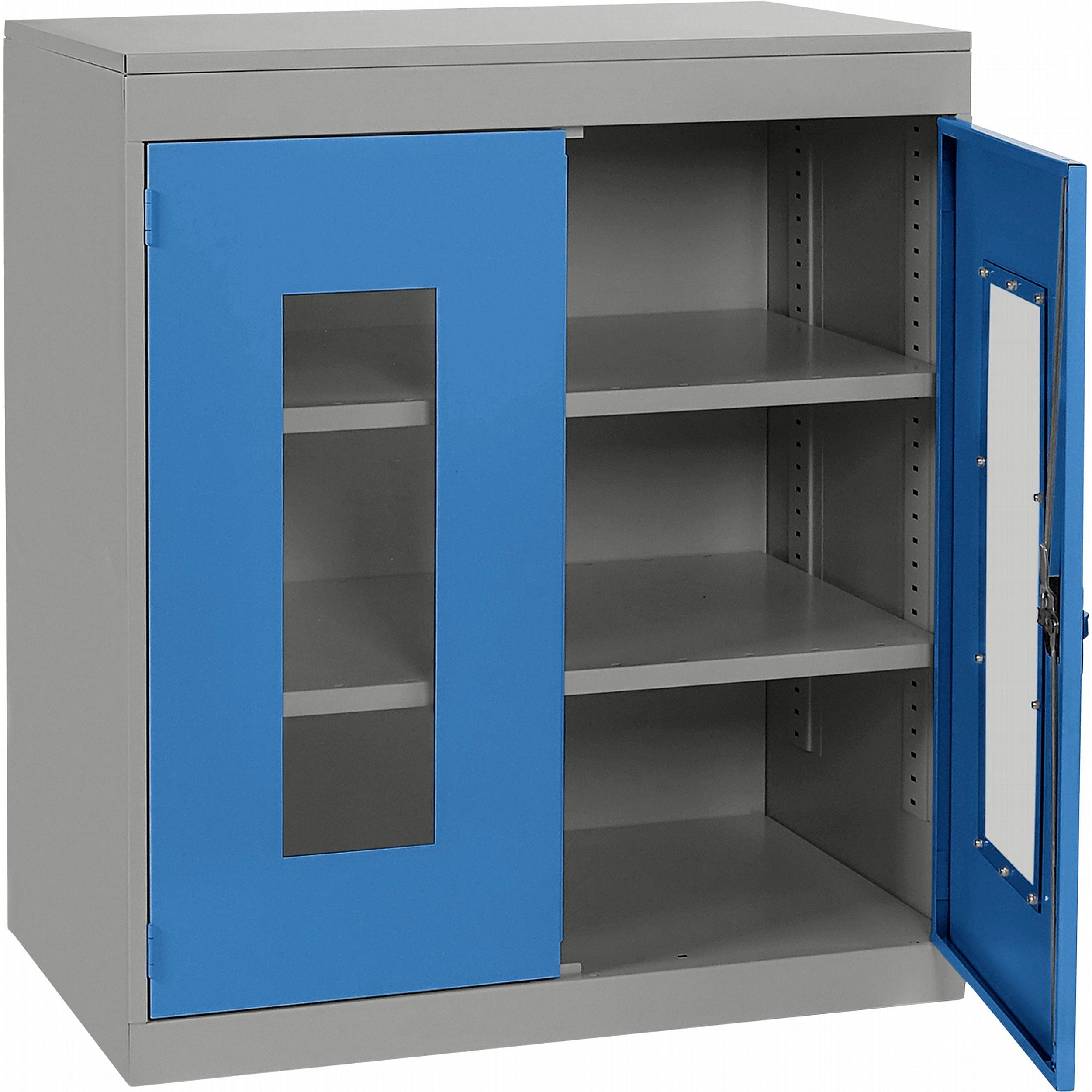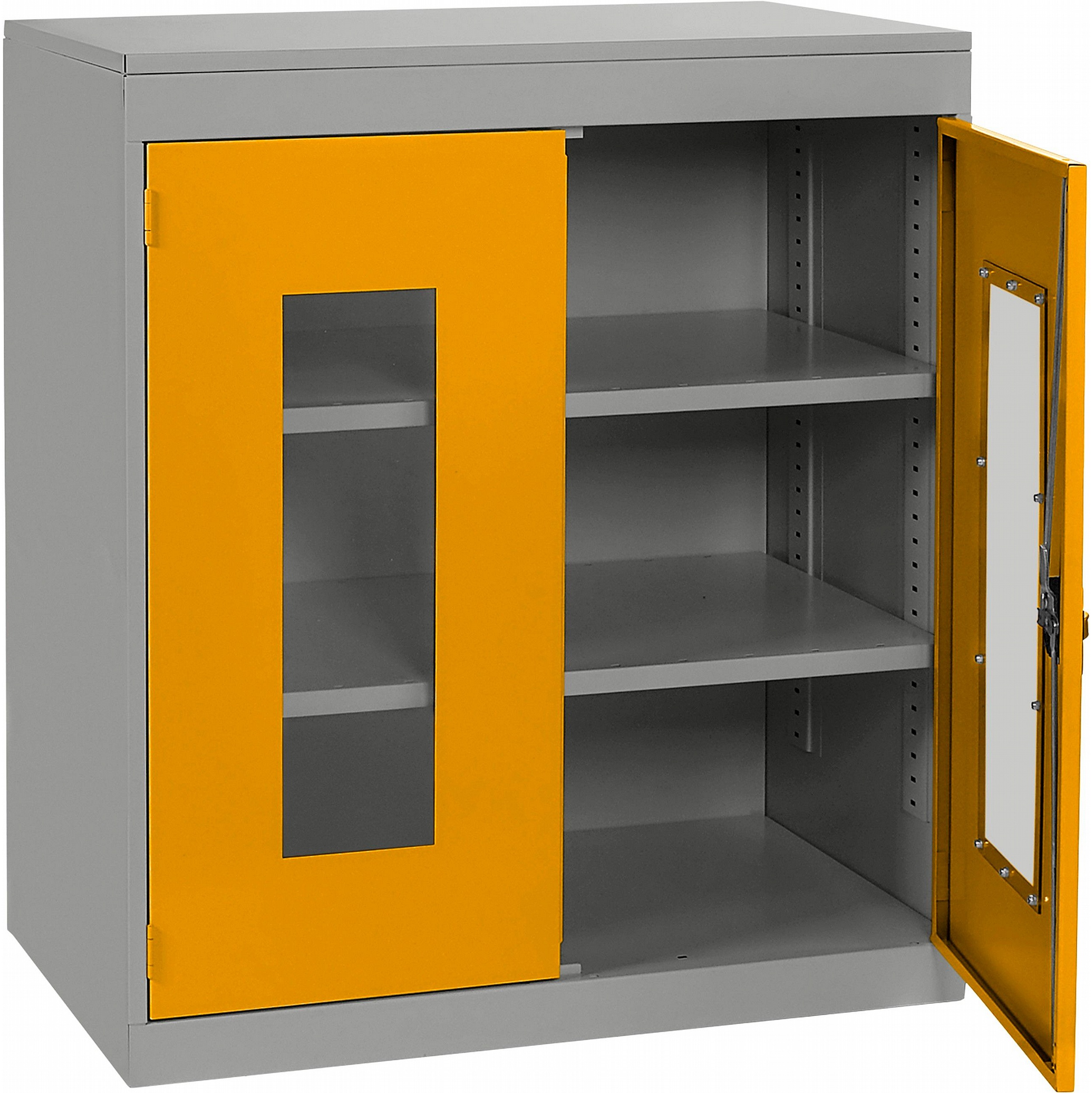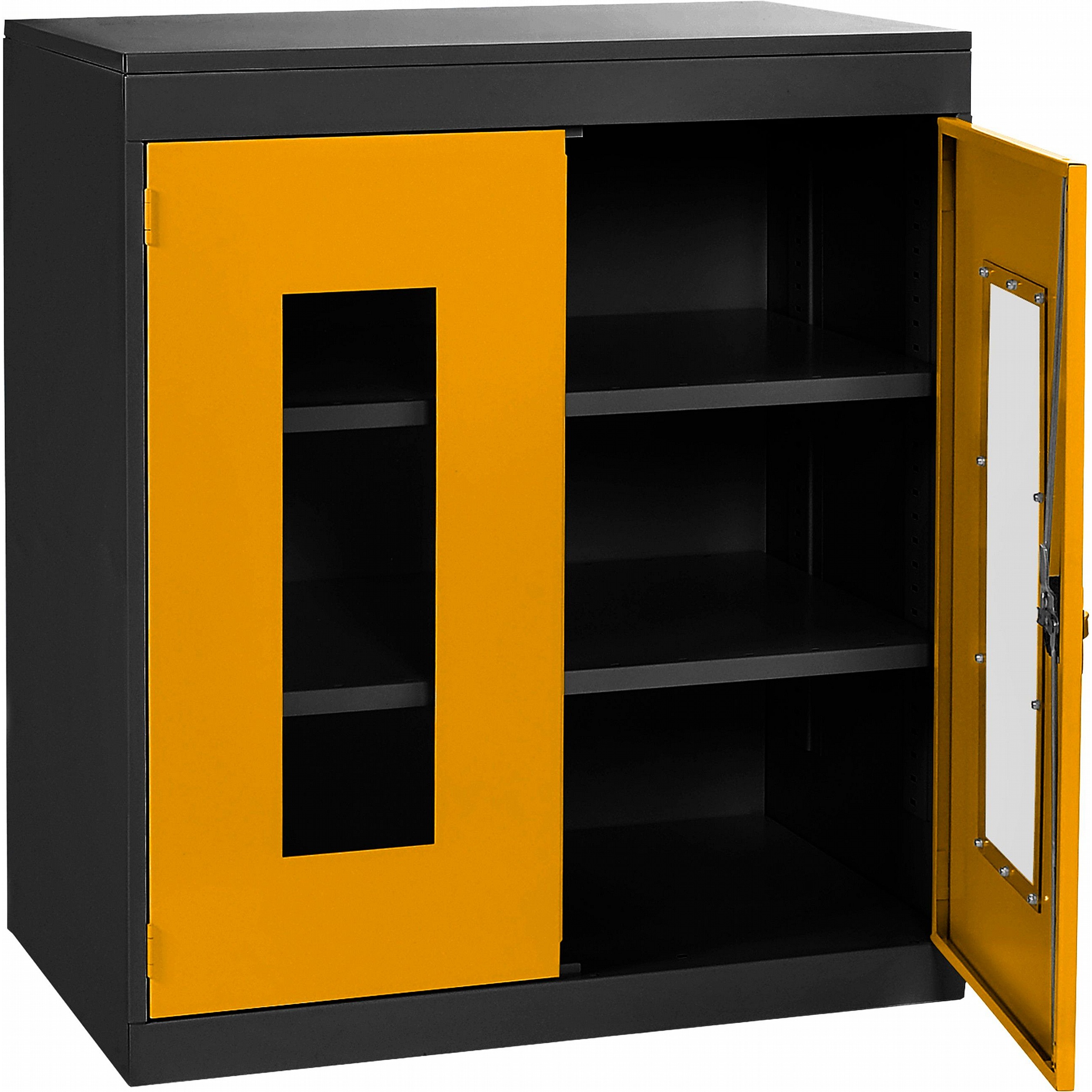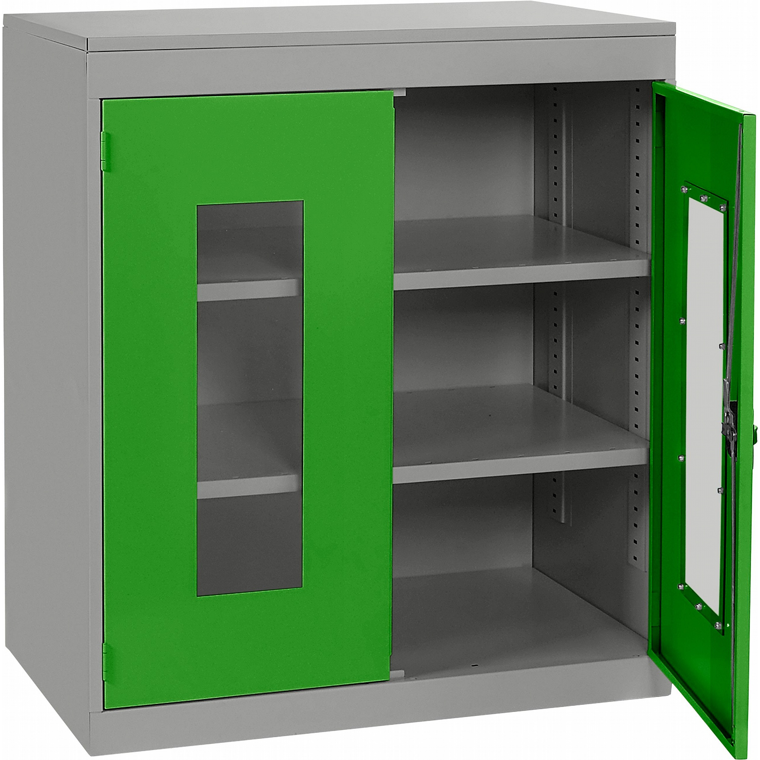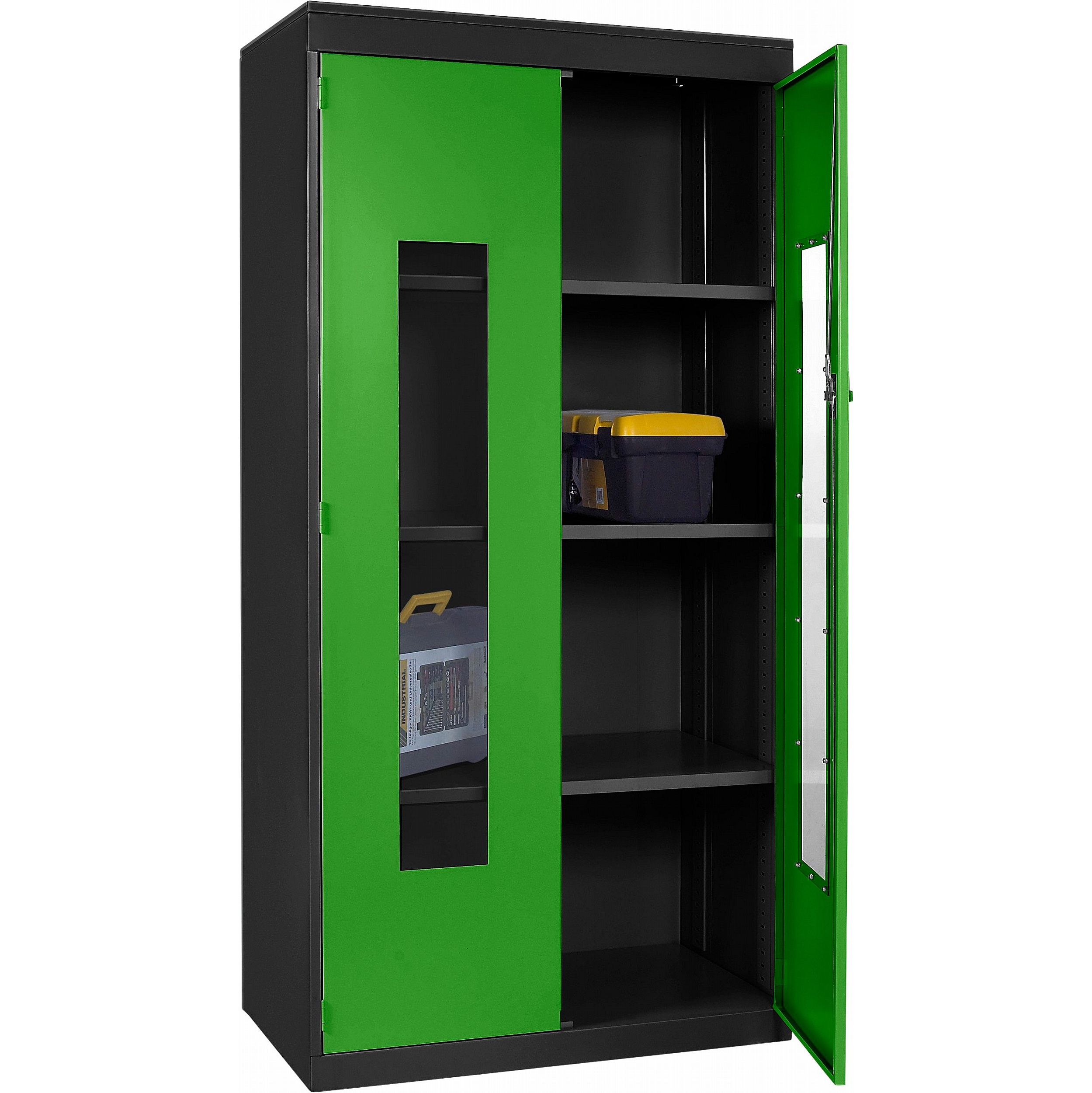 - Clear polycarbonate panels in each door allow you to see what’s inside at a glance, saving time and supporting a well-organised workplace.