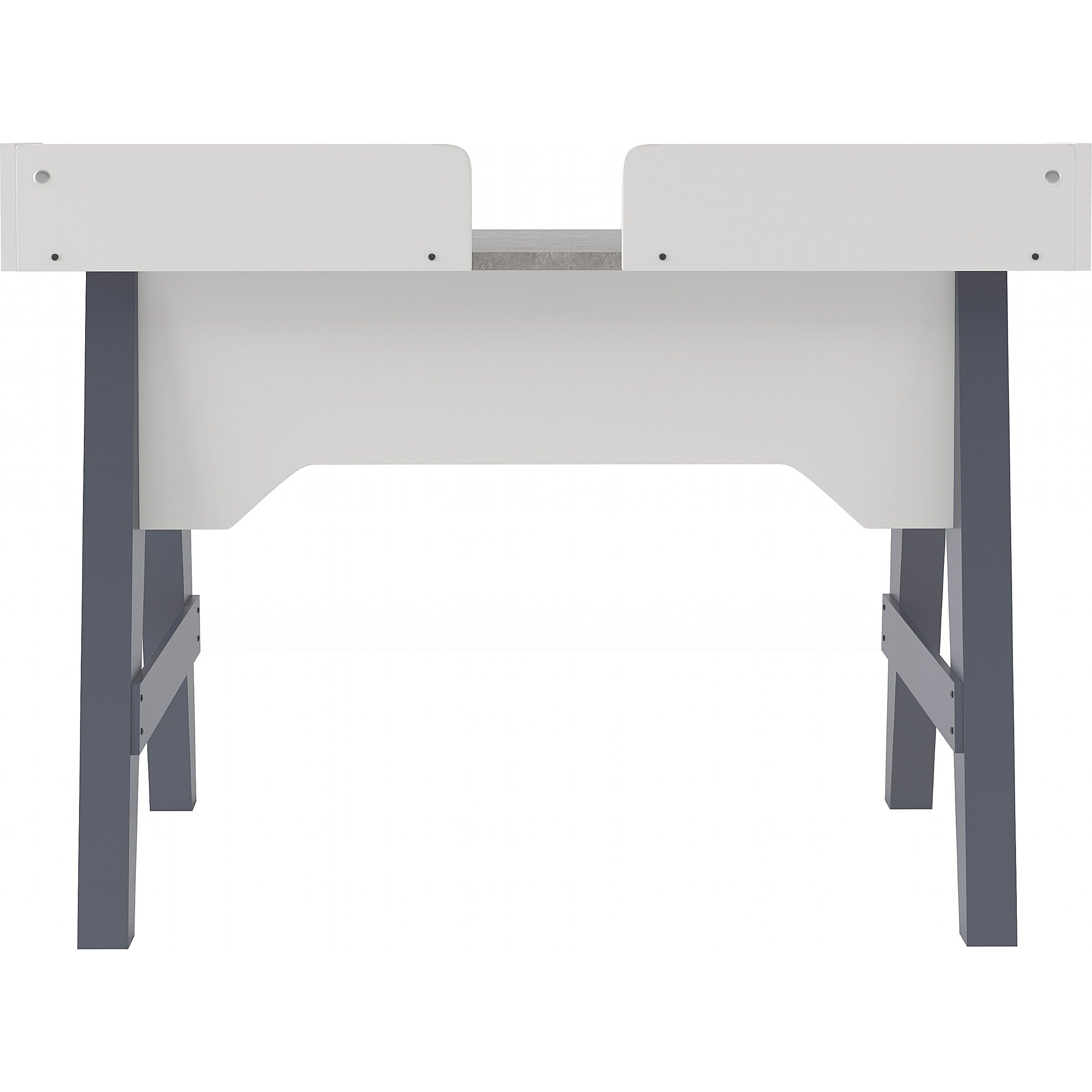 - Desktop is finished in a grey faux-marble effect and works well with the white and grey contrasting supports.