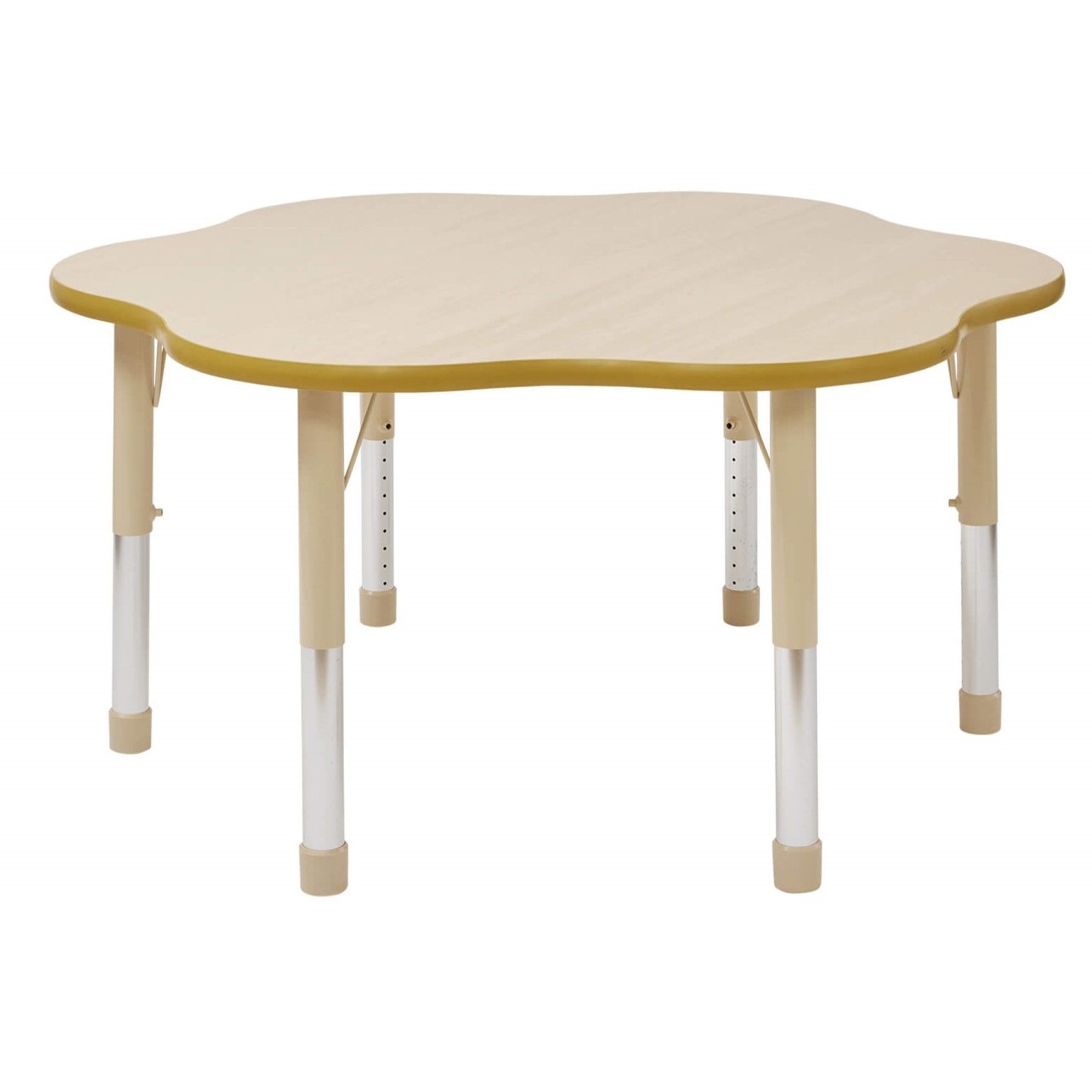- This uniquely shaped flower table is equipped with a tough rounded PVC edge.