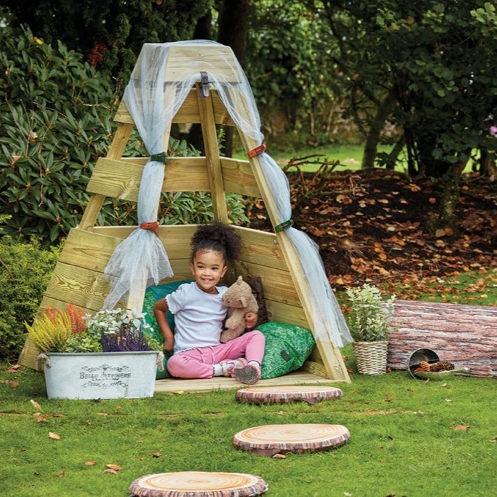 - With its natural wooden finish, the teepee blends comfortably into garden areas and outdoor learning environments.