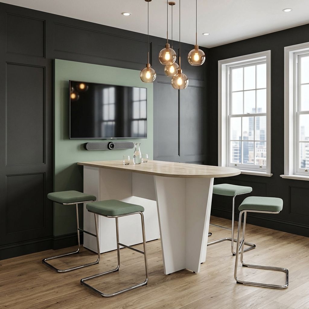 - Tall poseur-height sits taller than standard tables, and is perfect for informal meetings, collaboration, or quick catch-ups.