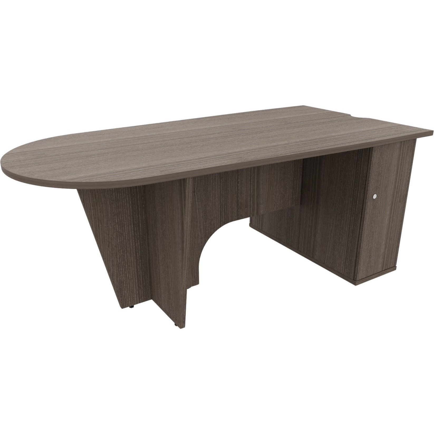 Make a great first impression with the Agenda Media pear conference and boardroom tables. This unique pear shaped table is designed with collaboration in mind and its distinctive profile means it can be placed against a wall to make the most of your space. Available with or without a built-in storage cupboard, it keeps everything you need close to hand. Agenda is manufactured from high quality melamine faced panels for a fantastic finish and it comes in a wide range of wood effect options to suit any interior. And for added peace of mind, it comes with a 5 year manufacturer’s guarantee, so you know it’s built to last.Details