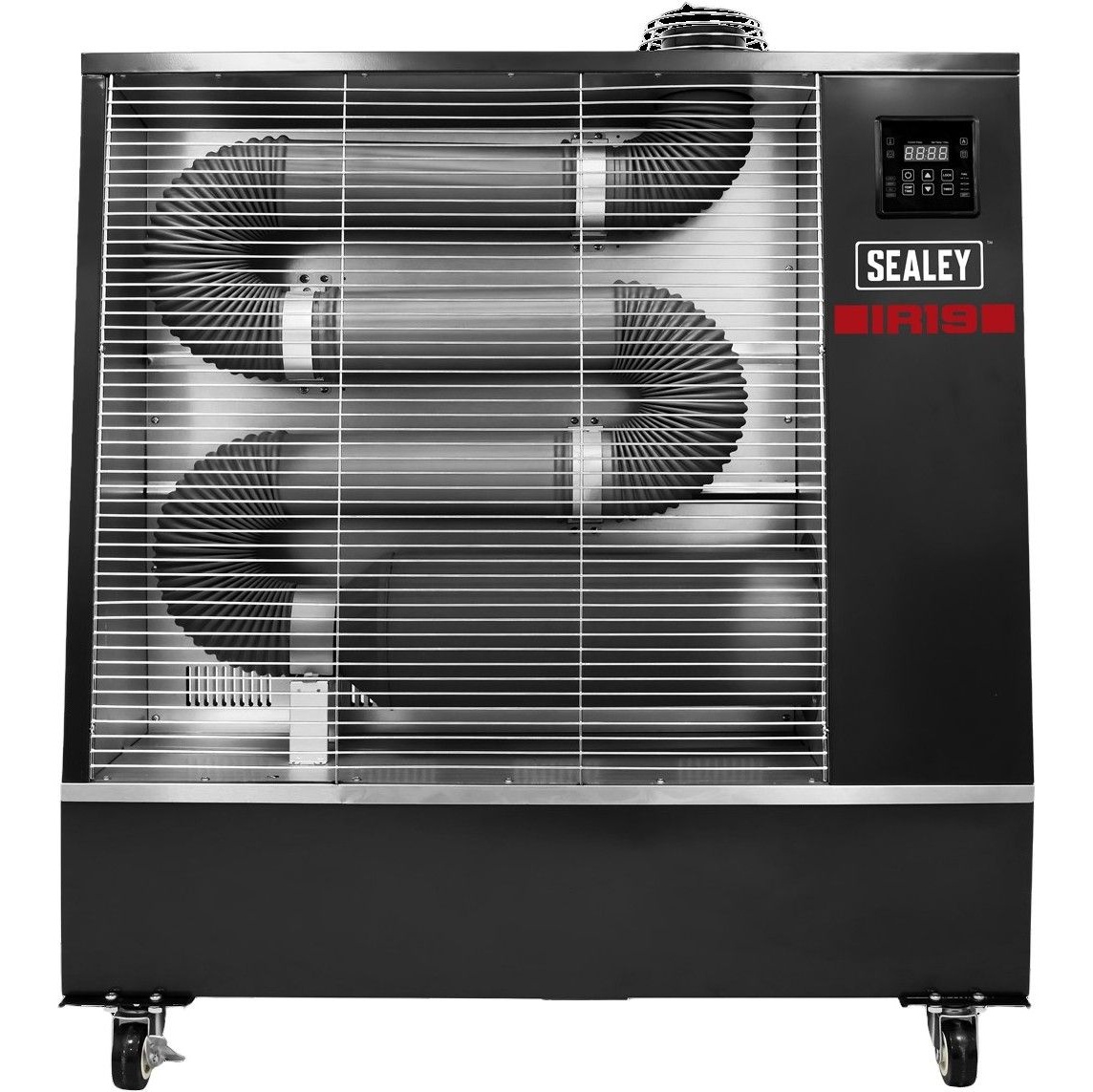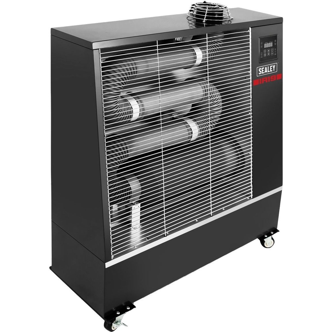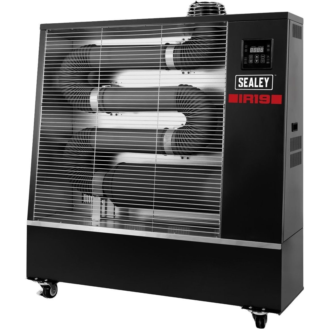 - With its industrial black cabinet finish, the heater offers a modern, understated look, blending easily into professional workshop environments.