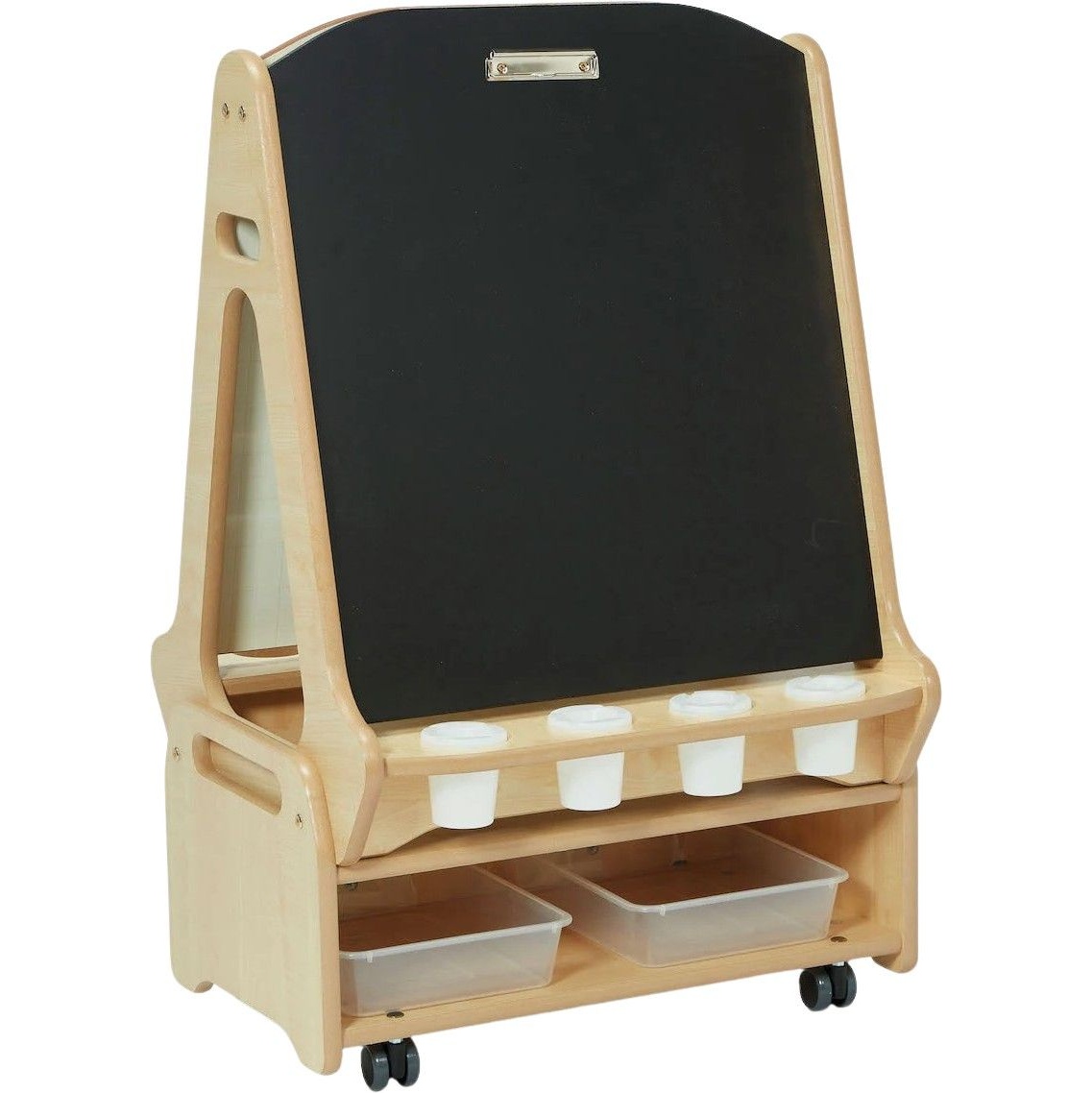 - Designed with a low level storage trolley beneath the easel to keep art materials neatly organised and easy to reach.