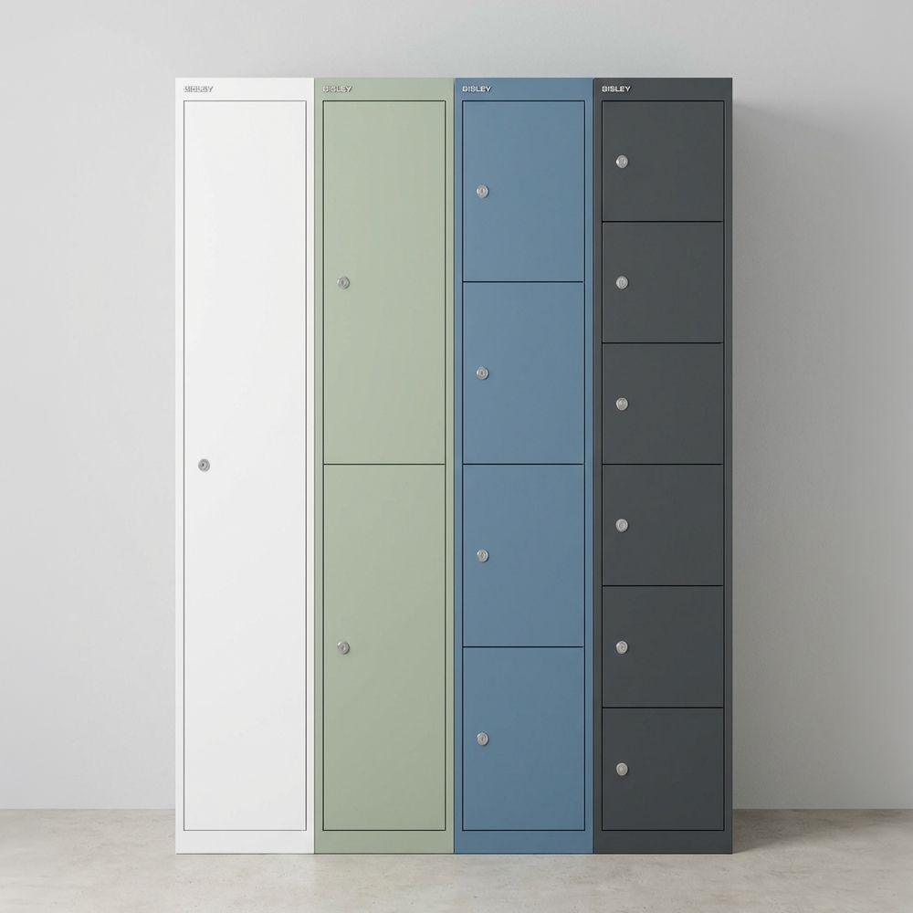 Enhance your working environment with UK made office furniture and storage from Bisley. Discover a comprehensive range of high-quality office furniture, tailored to meet your needs. These Bisley Slimline Metal Lockers are designed to offer personal storage without taking up much room, making them a smart choice for busy workplaces or shared environments. They bring together a clean, modern look with practical everyday functionality, so belongings stay secure, organised, and easy to access. With multiple door configurations and depths to choose from, each locker column can adapt to different spaces while keeping things neat and clutter free. Offered with a 5 year guarantee for peace of mind when ordering.Details