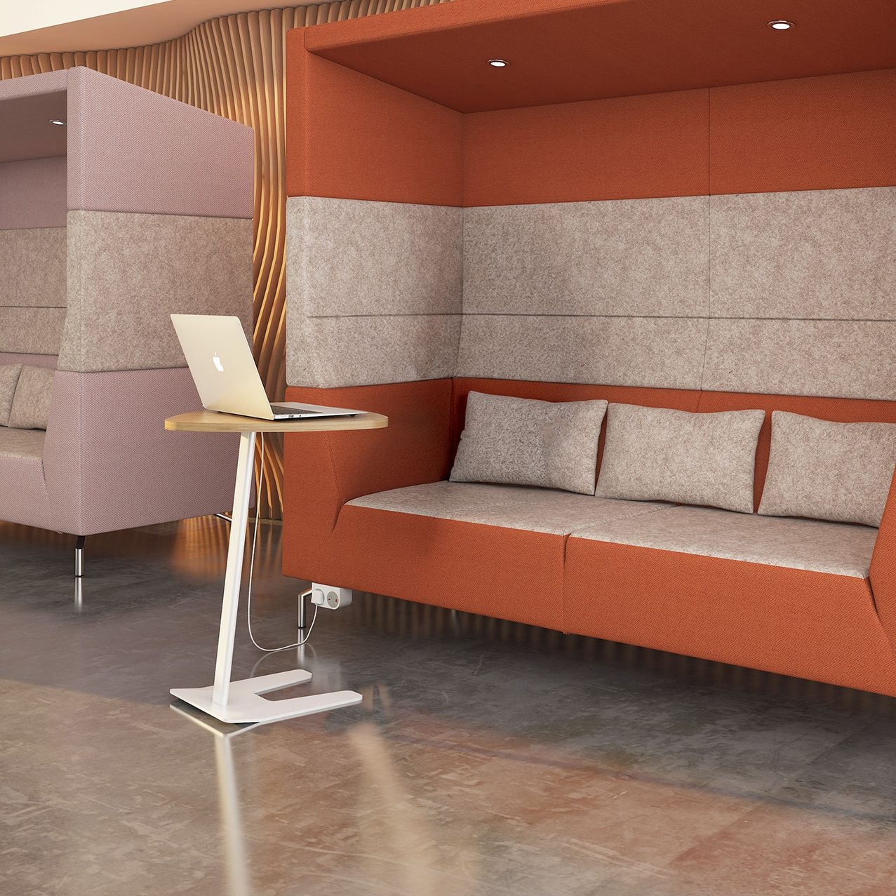 - Use alongside seating in social spaces, reception and breakout areas for a cool touchdown solution.