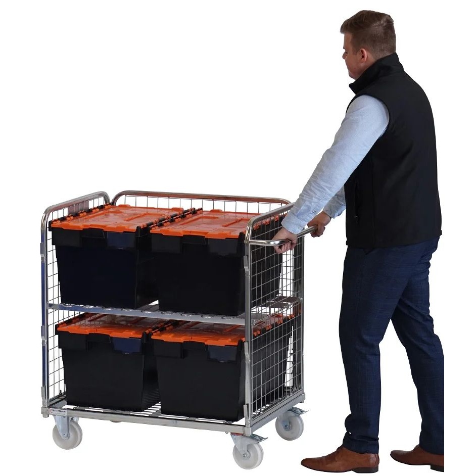 - Comod 3 Sided Compact Merchandise Picking Trolley is extremely versatile with the capacity to hold a shelf and up to four 600x400mm Tote Boxes (boxes not supplied).