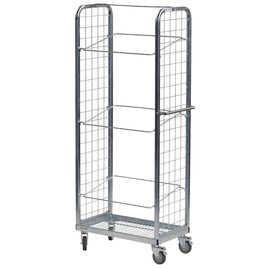 - Ideal for use in narrow or small storerooms, as the swivel castors quietly move in every direction.