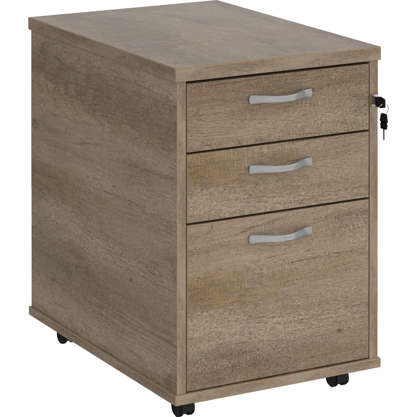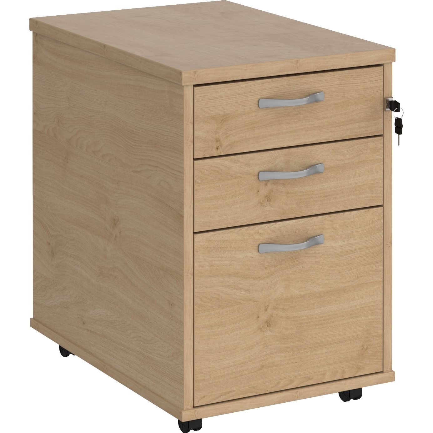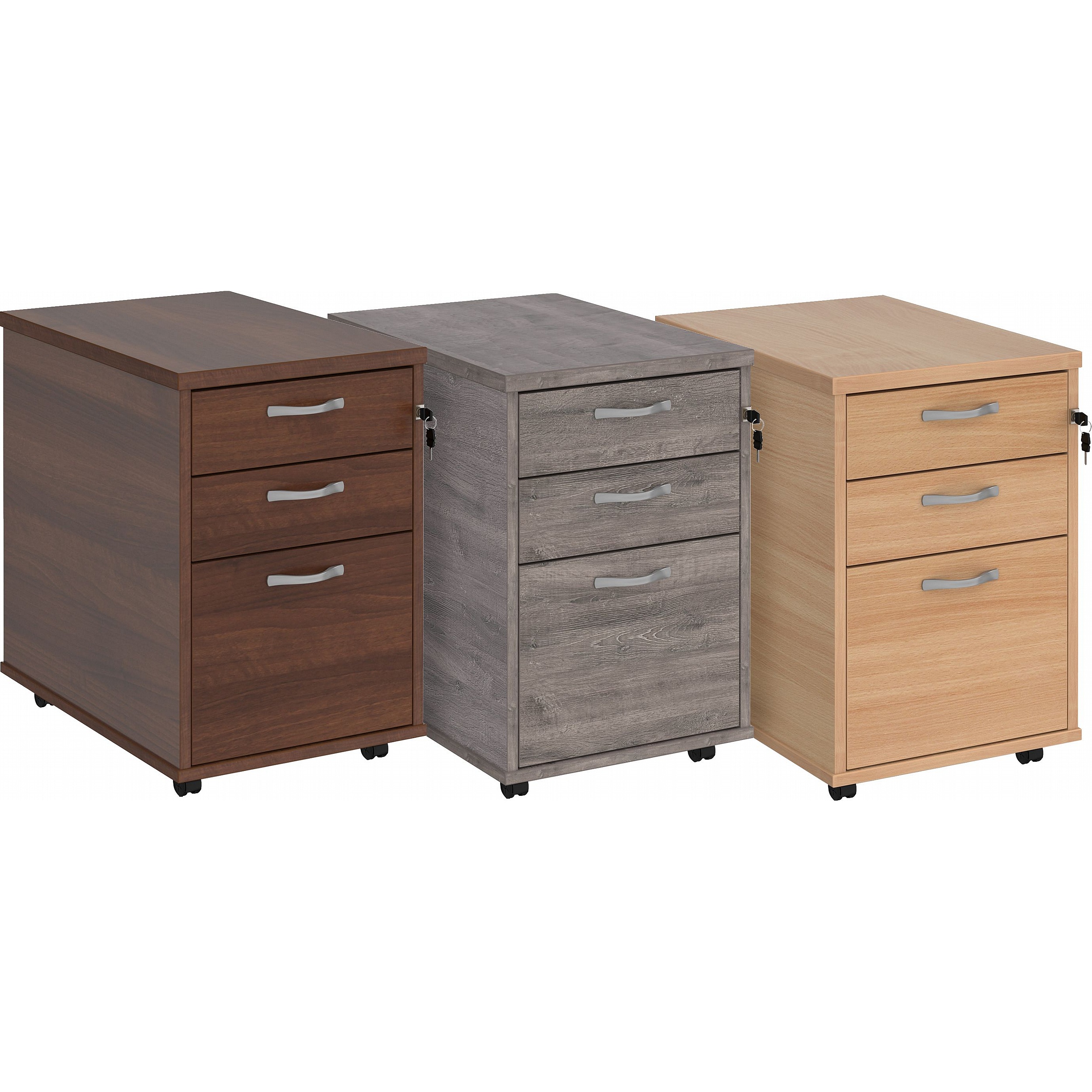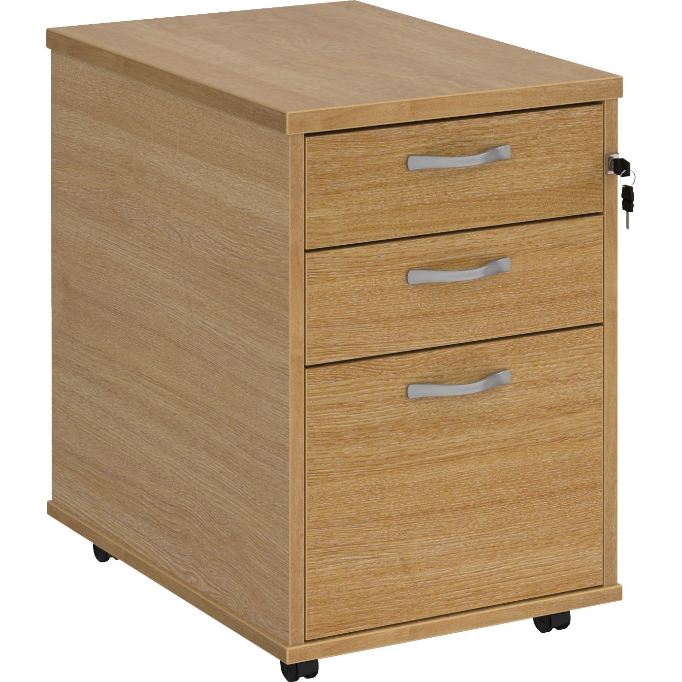 The Contract Plus tall mobile under desk pedestals are part of the Contract Plus office storage range, designed to provide a versatile and practical solution for any workspace. These under desk pedestals offer a simple way to maximise space while keeping your office essentials close at hand. Each unit includes two standard storage drawers for everyday stationery and supplies, plus a deep filing drawer on the bottom that accommodates both A4 and Foolscap files. Central locking ensures safety from unauthorised access, while the four twin-wheel rolling castors ensure smooth mobility and easy repositioning when required. Choose from a range of stylish wood finishes to create a beautiful and productive workspace.Details