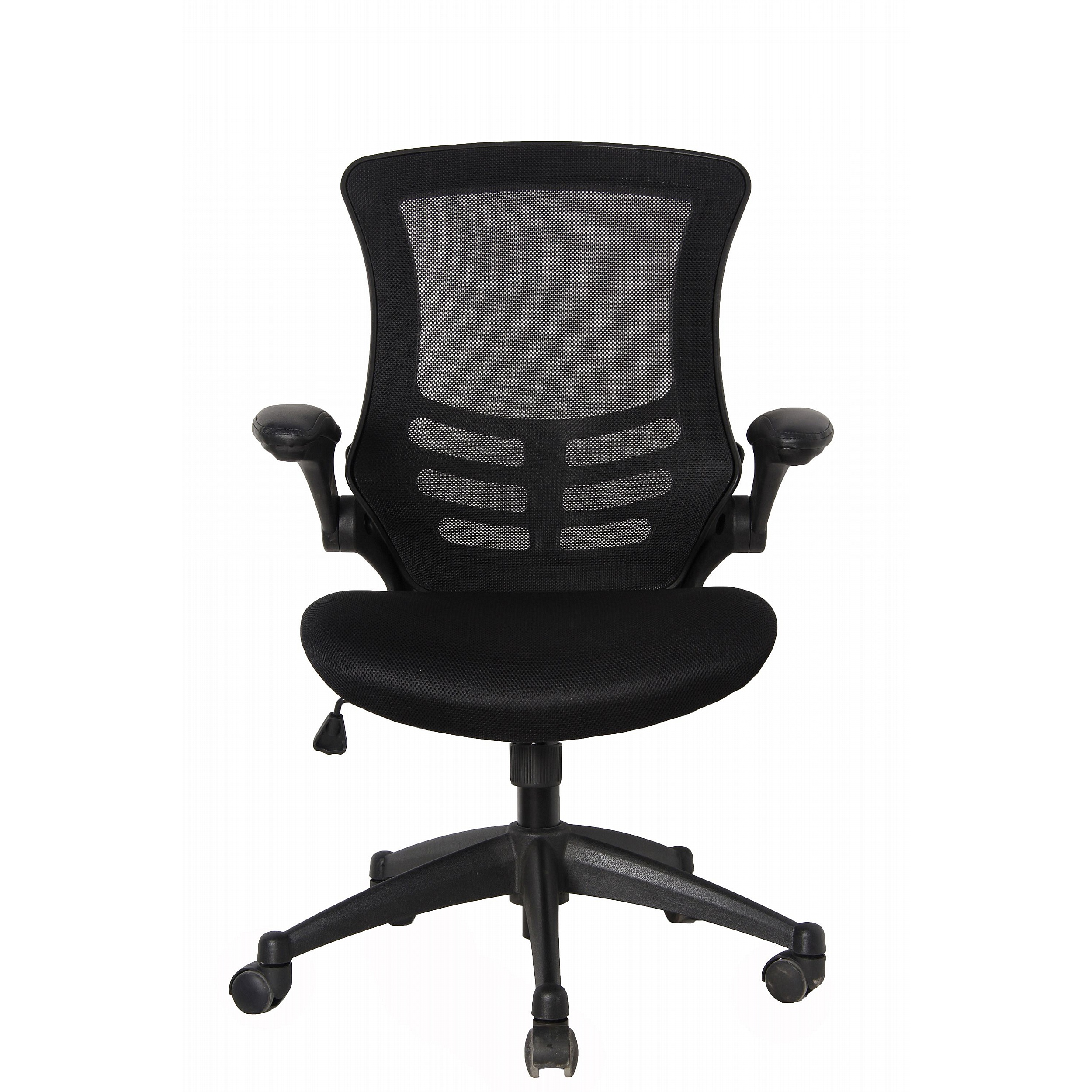 - Folding arms offer supportive forearm comfort and fold down neatly to bring you closer to your work surface.