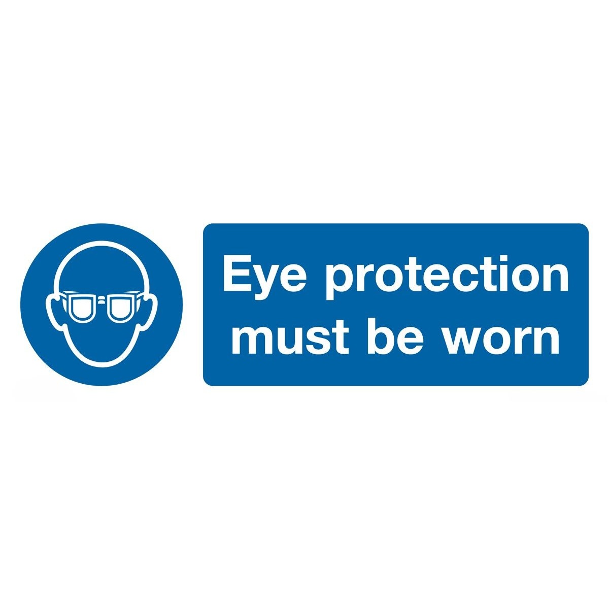 Remind staff, visitors, or contractors to follow essential safety protocols with this clear and durable self-adhesive sign. Measuring 300 × 100mm, it’s designed to be displayed in locations such as offices, workshops, and commercial spaces. Whether you're reminding workers to wear eye protection or simply reinforcing workplace safety, with a white background these bold blue signs deliver a straightforward message that’s easy to spot and hard to ignore.Details