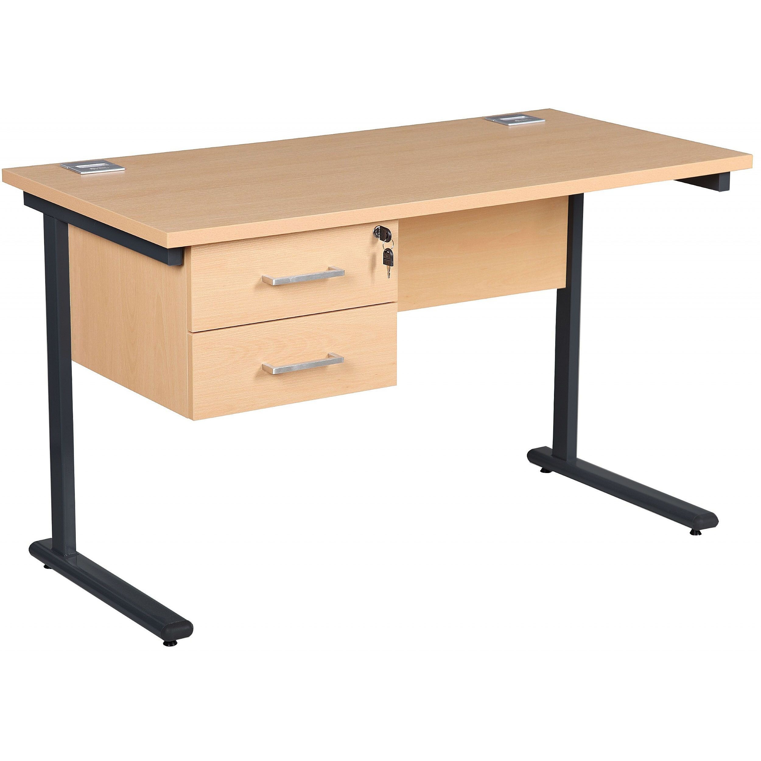 Presenting the best in affordable office desks with the Horizon family of office furniture. Partner desks with Horizon office storage to create a harmonised space that looks fantastic. Horizon compact rectangular desks are simple, functional, sturdy and they look great too. The smaller footprint of this shallow depth model makes it ideal for use in tighter spaces. Rectangular tops are paired with a simple cantilever frame and the desk comes with one drawer pedestal to store all your office essentials. Horizon compact office desks work well in office workspaces and in the home office. This reliable office furniture arrives quick as a flash with next day delivery and it comes with a 2 year manufacturers guarantee for complete peace of mind.Details