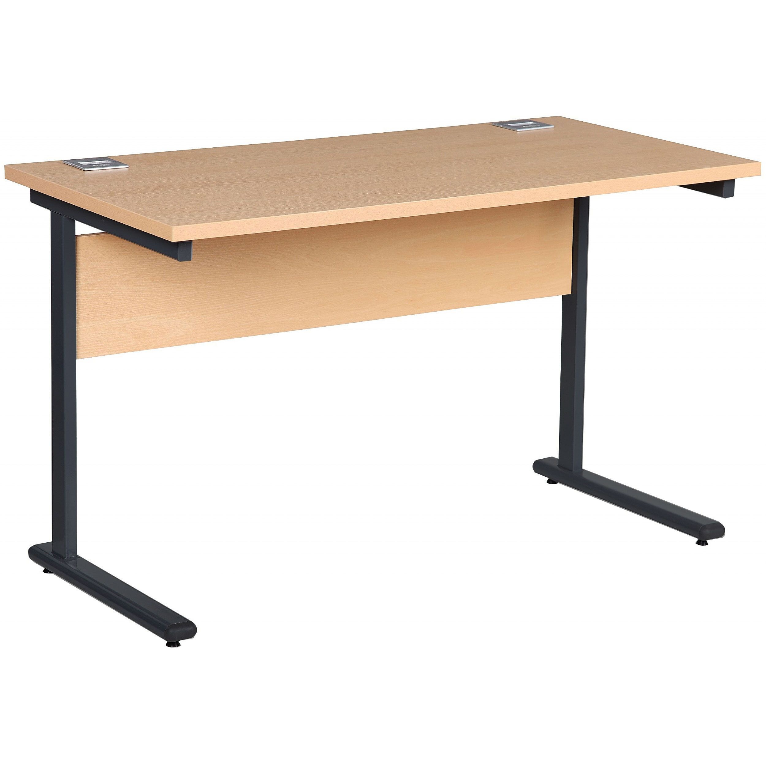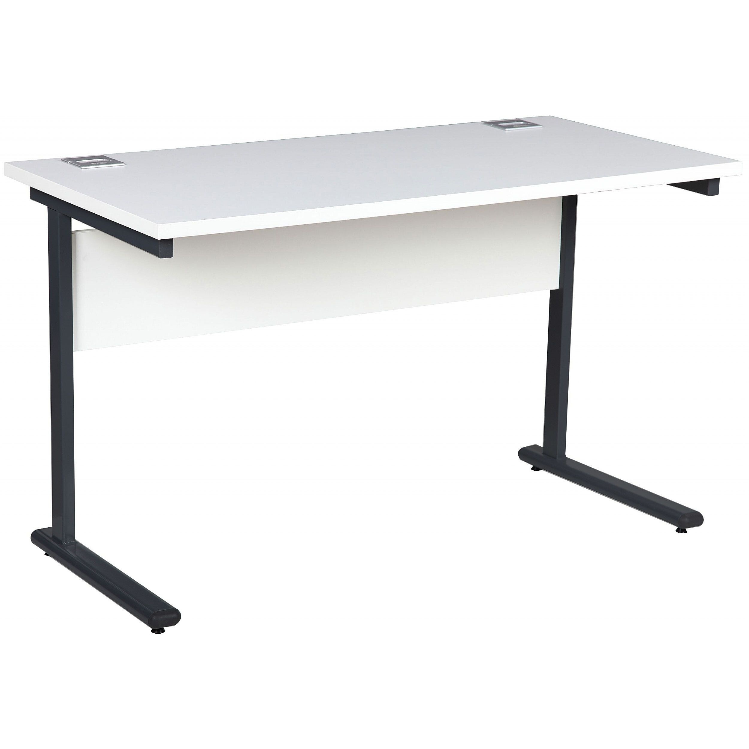 Presenting the best in affordable office desks with the Horizon family of office furniture. Partner desks with Horizon office storage to create a harmonised space that looks fantastic. Horizon compact rectangular desks are simple, functional, sturdy and they look great too. The smaller footprint of this shallow depth model makes it ideal for use in tighter spaces. Rectangular tops are paired with a simple cantilever frame and the desks come with cable access to help keep wires and cables neat and under control. Horizon compact office desks work well in office workspaces and in the home office. This reliable office furniture arrives quick as a flash with next day delivery and it comes with a 2 year manufacturers guarantee for complete peace of mind.Details
