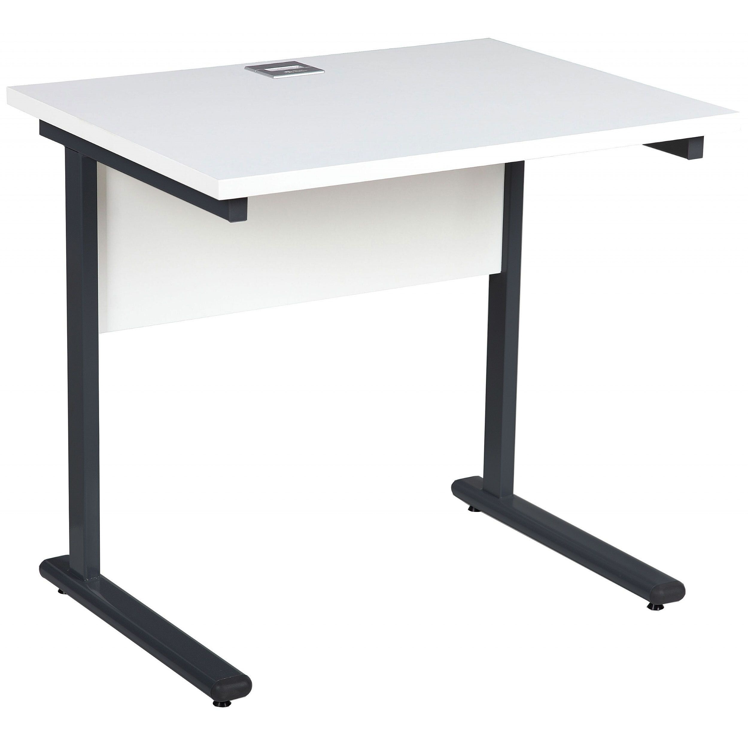 - The 800W desk has 1 cable access port in the centre of the top and modesty panel to keep wires neat.